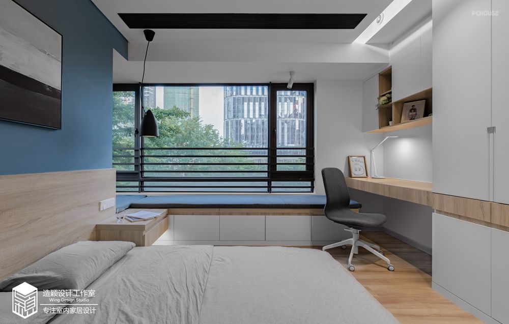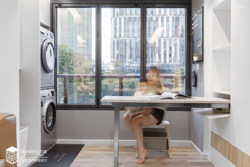 把陽台歸入室內,隱藏式小書桌一打開,就是女主人的小天地,畫畫、做手工、陪孩子閱讀,功能性十足。