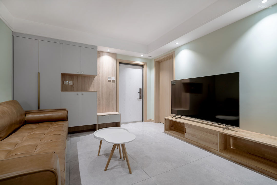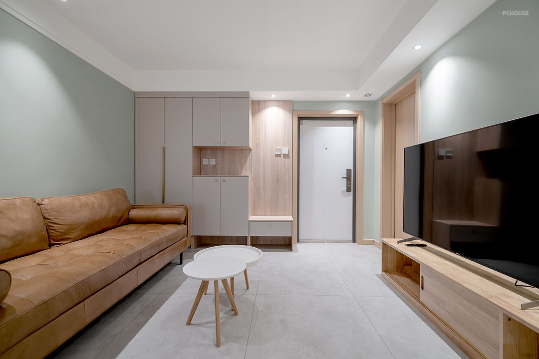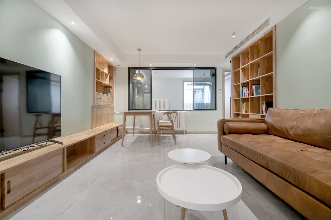 客户希望家里地面好打理一些,所以家里基本都是采用的地砖,客厅是地面用了60*60的灰砖,也好融入到这个空间了,多说一点的是灰砖有很多种类,在选择上要根据家里的光线去选择,这一点很重要,太重了或者太浅了效果都会大打折扣。
