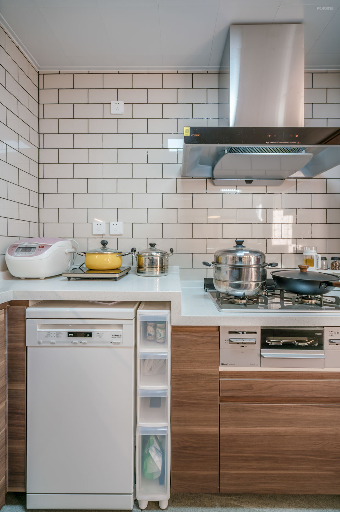 洗碗机与煤气灶的位置设计成跌级的形式,使用起来更方便,尺寸高度都很合适