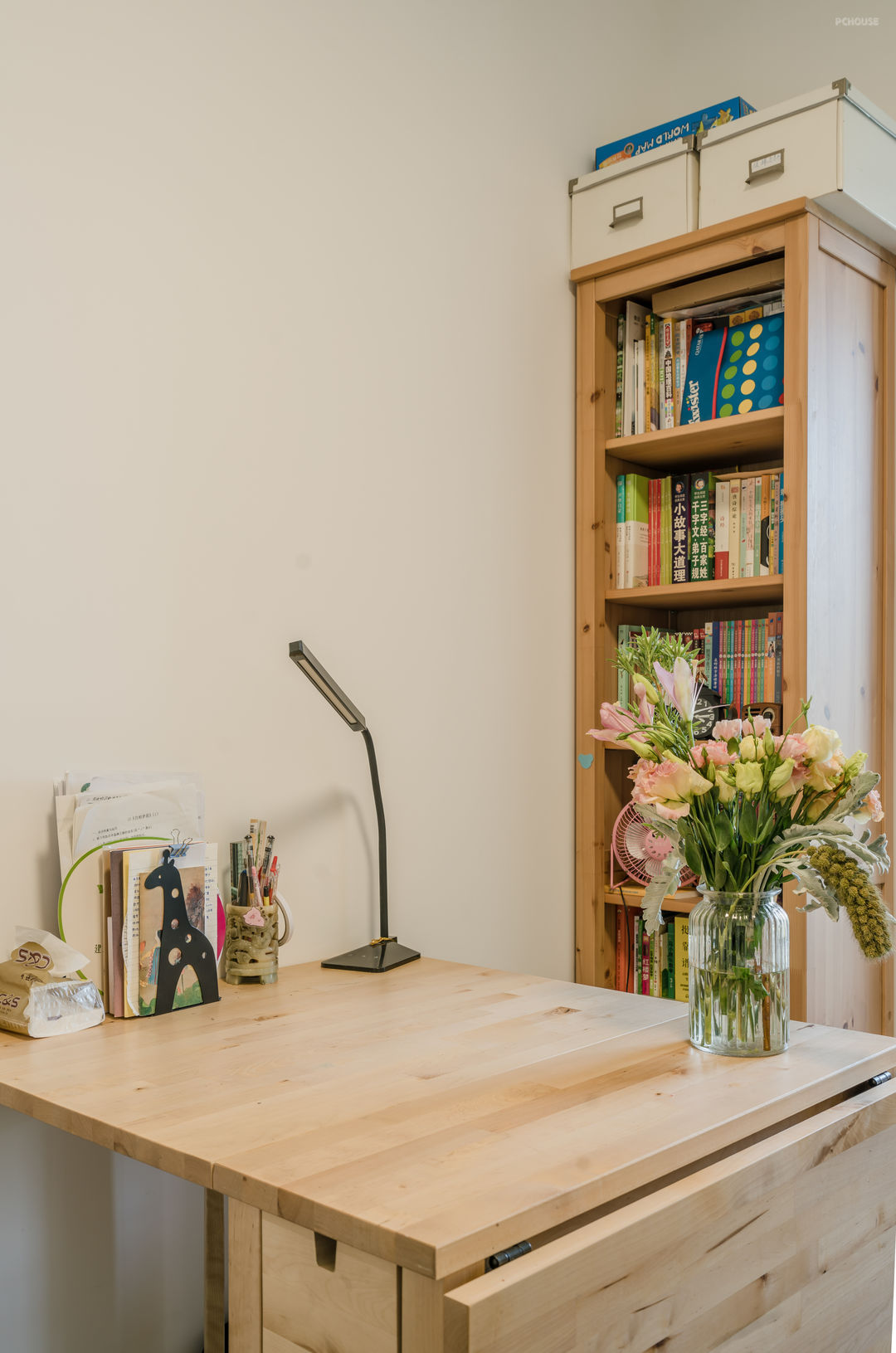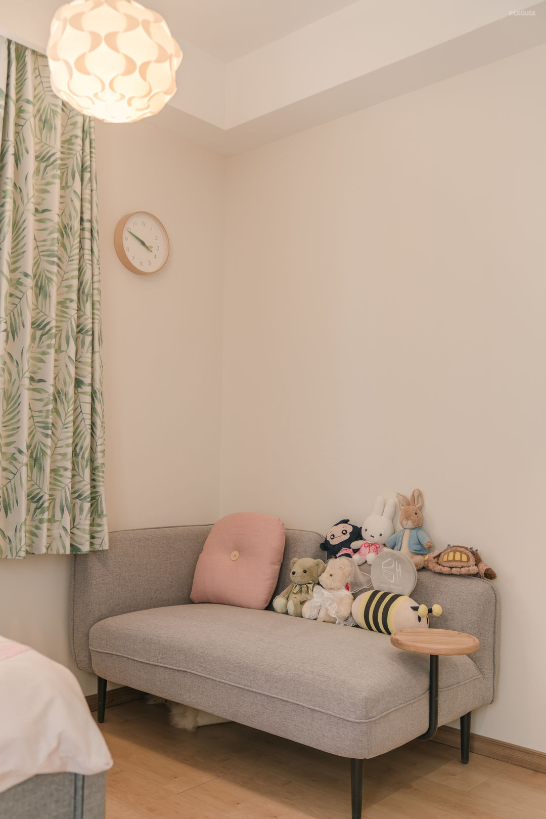 女孩喜欢安静,喜欢看书 喜欢独自享受自己女孩世界里美好的空间 于是在女孩房里 有小的写字桌 放满她的小玩具,画笔与即时看的书 床铺上堆满的布偶玩具 与床尾处的小沙发 是女儿玩伴一起来家里玩耍时 为他们营造小朋友的待客空间