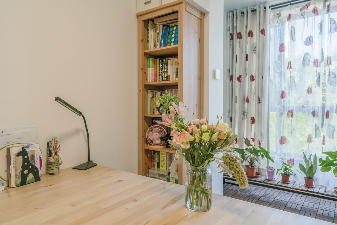 与书房联通的小阳台,长虹玻璃门,让阳光更通透