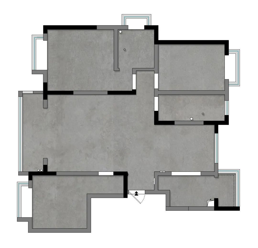 ④打通客厅阳台之间的墙体,将不能打掉的承重墙,包进柜体,完善空间整体性,提高客厅面积,改善采光。