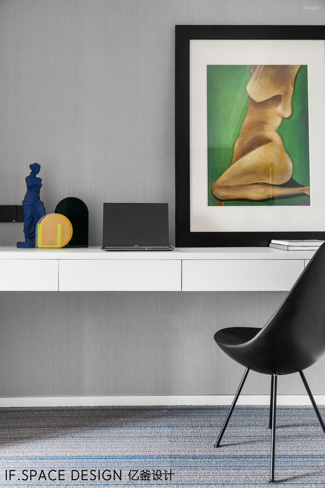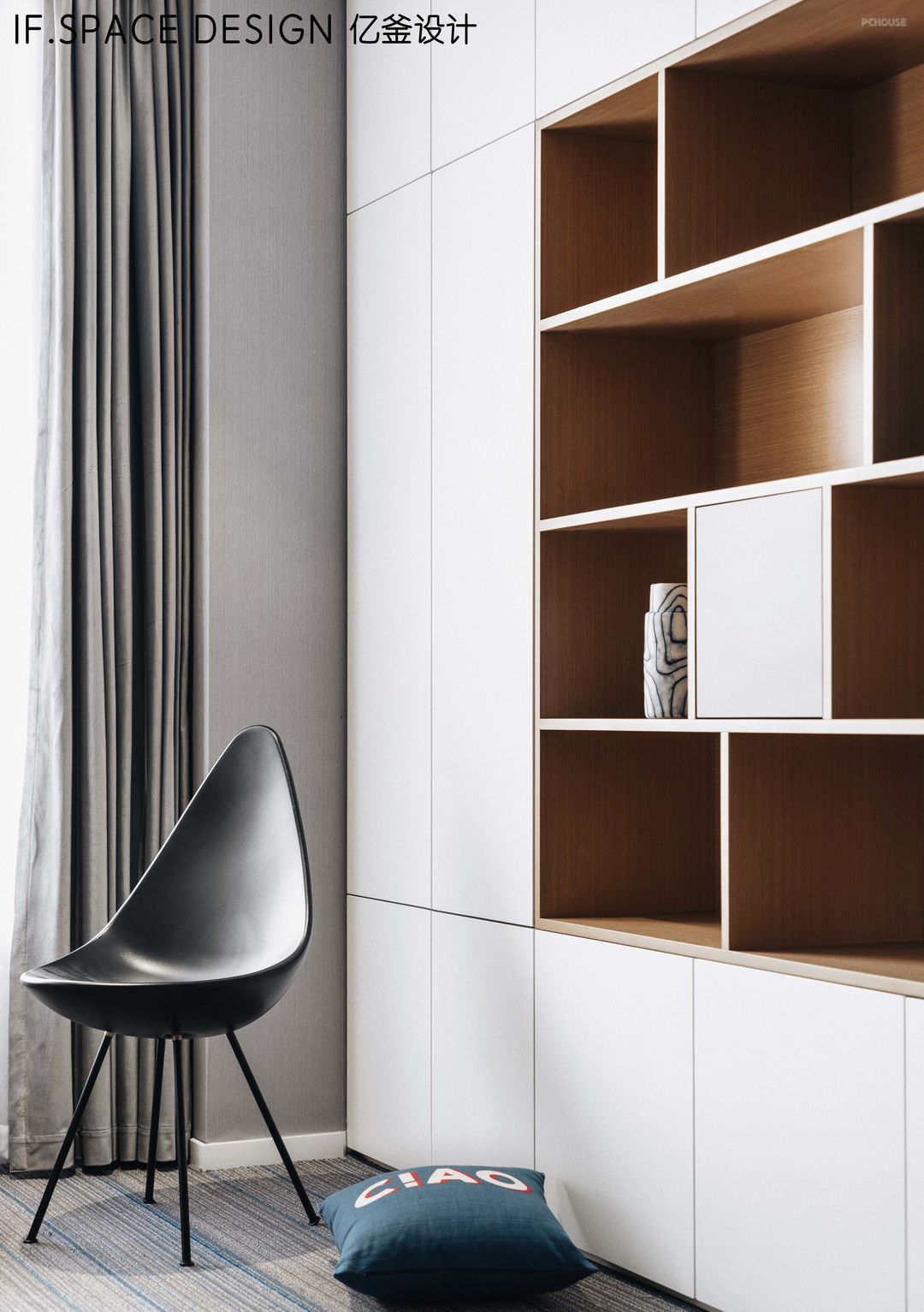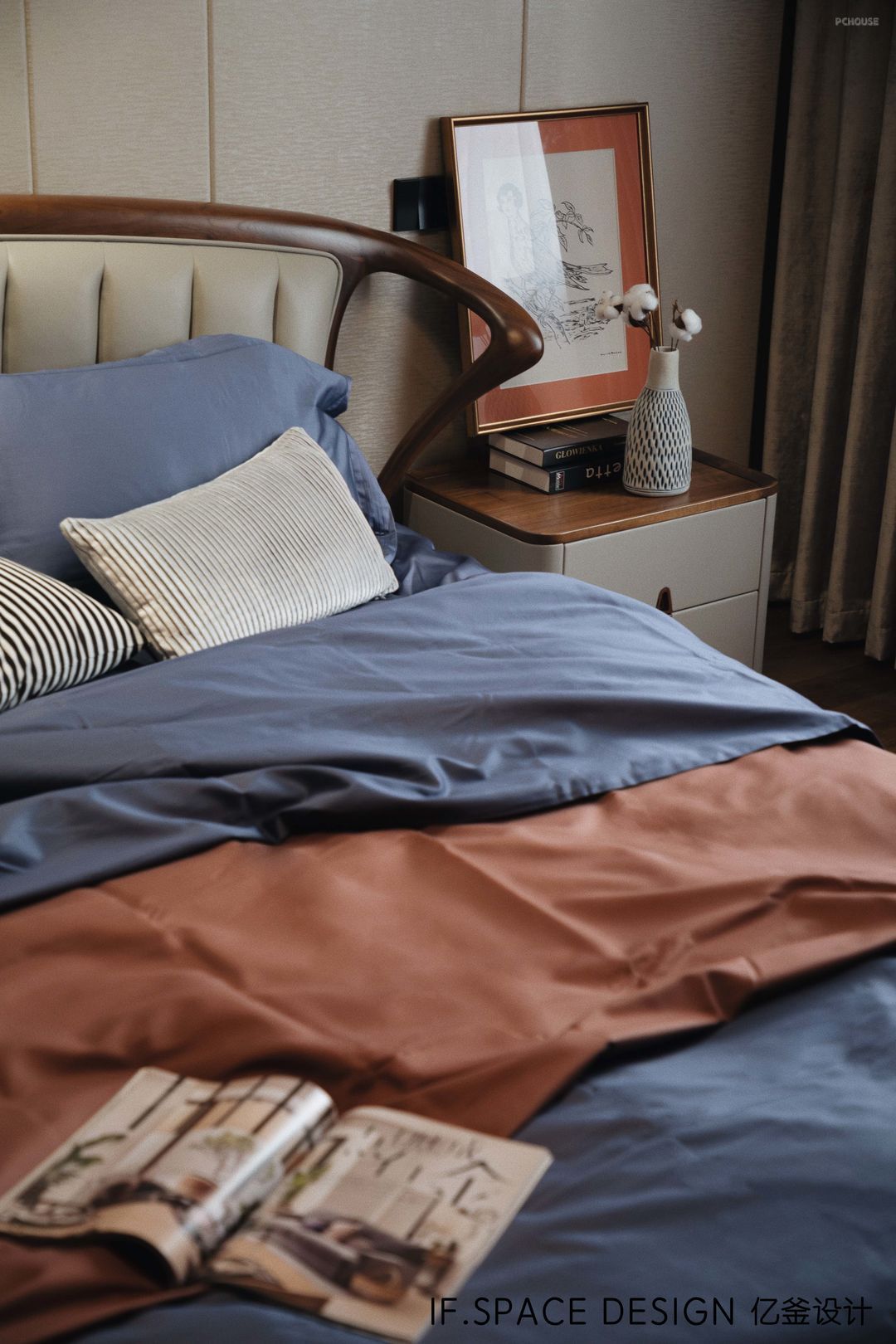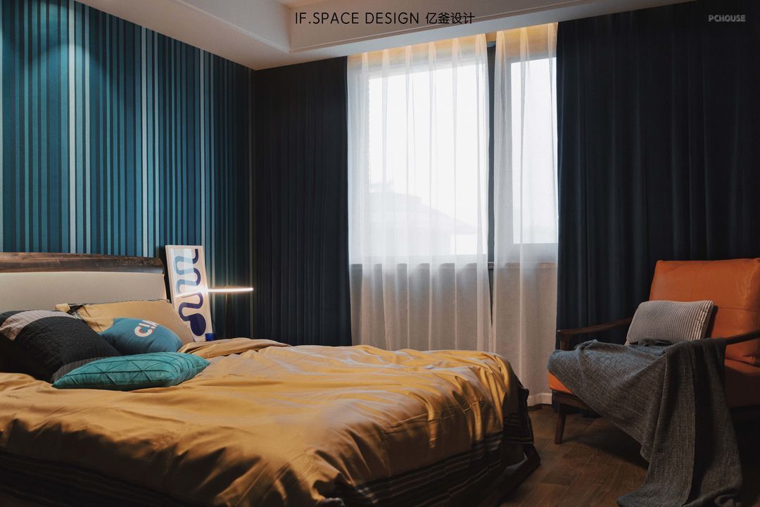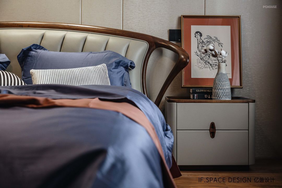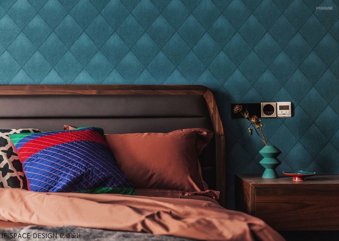 在卧室空间中,床品鲜明大胆的配色与图案为卧室增添了几分跳跃感,我们希望可以让客户在这个空间找到归属感之余也多一份视觉乐趣。