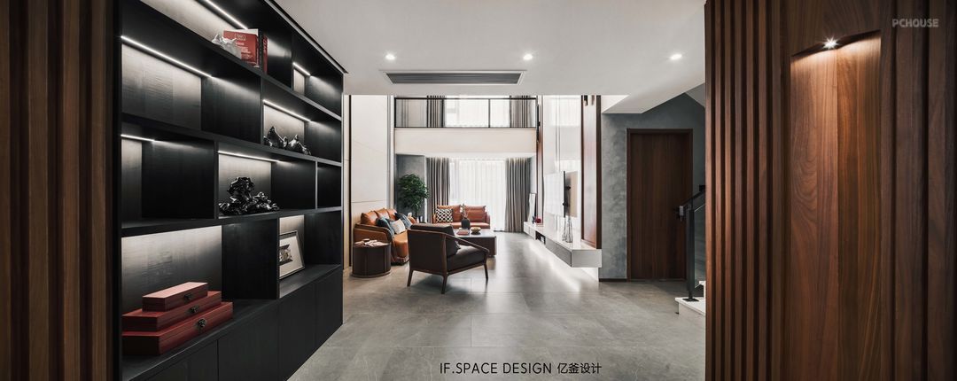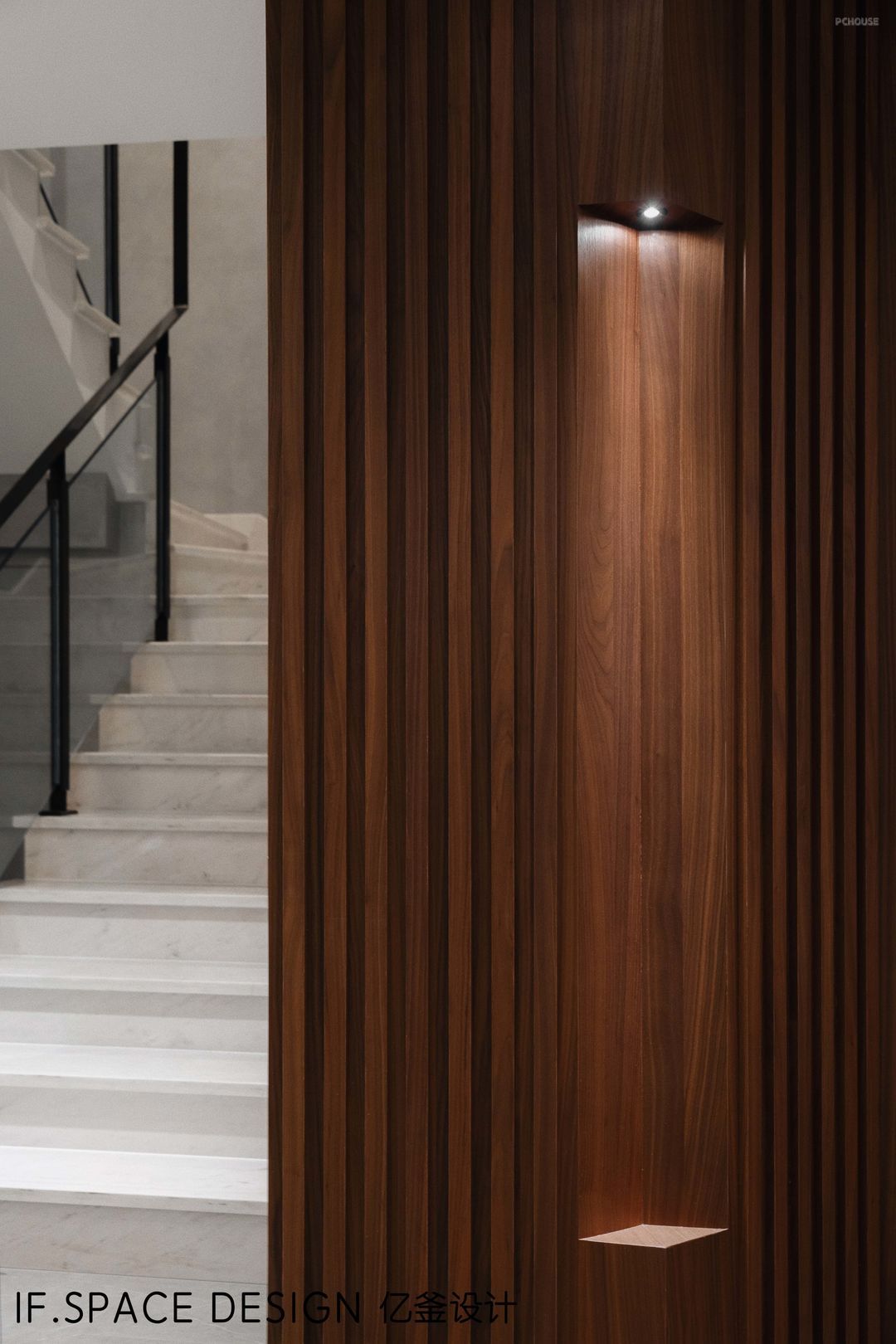 一层作为入户层,承载了家人的起居和社交功能。材质和色彩之间轻柔过渡,平衡出无限的舒适,再以艺术品植入提升质感。