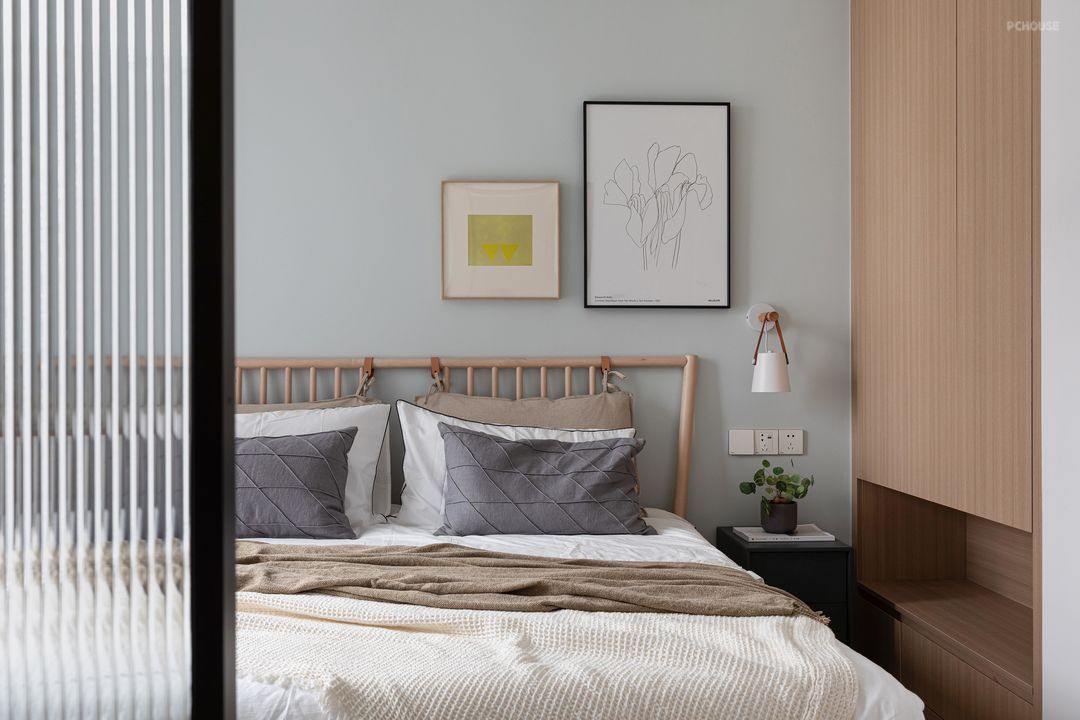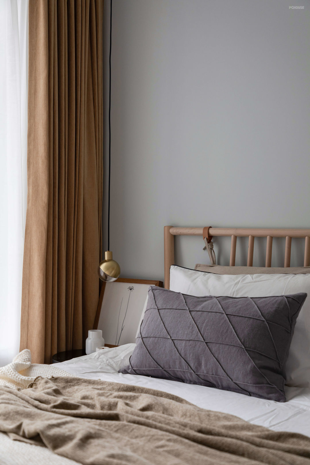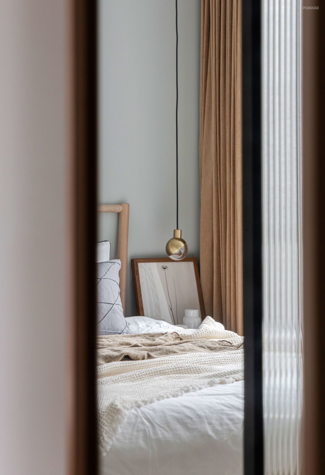 穿过步入式衣帽间,进入卧室,短暂一生,大约1/3都在睡梦里,所以空间没有做过多的装饰,让空间呈现生活本来有的样子,简单,干净。一张床,一幅画,一缕阳光,愿所有人都能有一个好的睡眠。