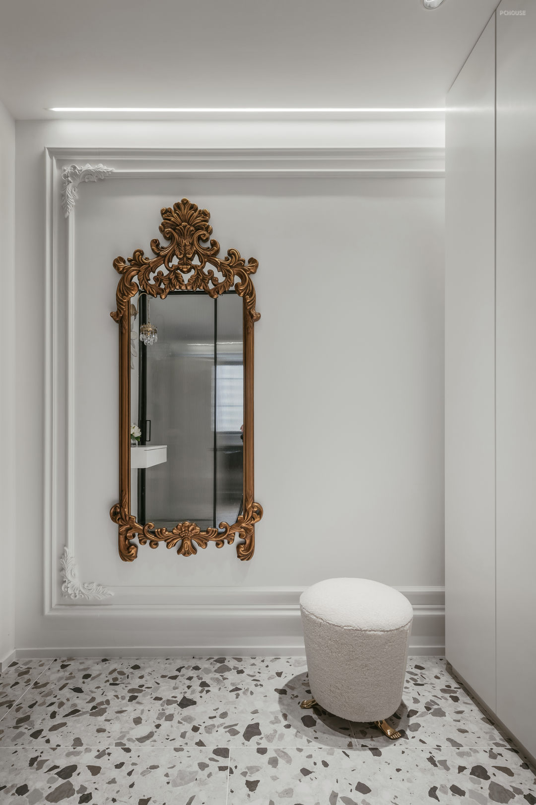 白色纯净、粉色浪漫、橘棕温润,在三者的交互下,与空间的多维对话,塑造了梦幻格调居所的语境,从中找寻现代与法式复古雕花线条的艺术混搭,释放现代空间女性独有柔美气质。