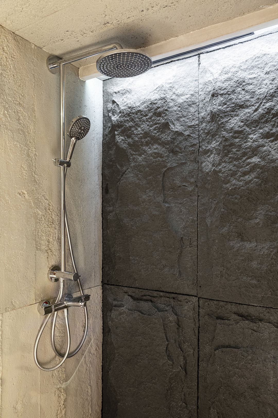 用了两款不同纹理的“聚氨酯”板材 它的特性是防水、安装简单、环保