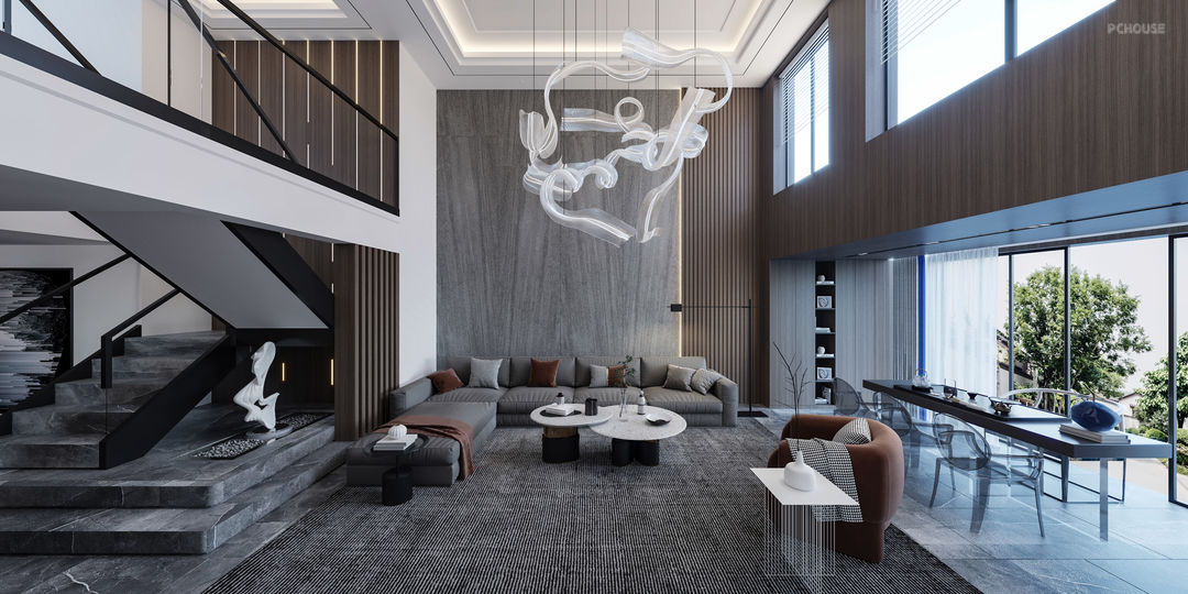 迈入客厅,是感官体验上的一种升华,挑空空间更富有视觉张力,致力于把客厅打造成一个简约,时尚的现代居家空间。手工区的增设,也可充当茶台,书桌…空间的围合更注重家人之间的情感交流,一家人其乐融融,自由天伦。