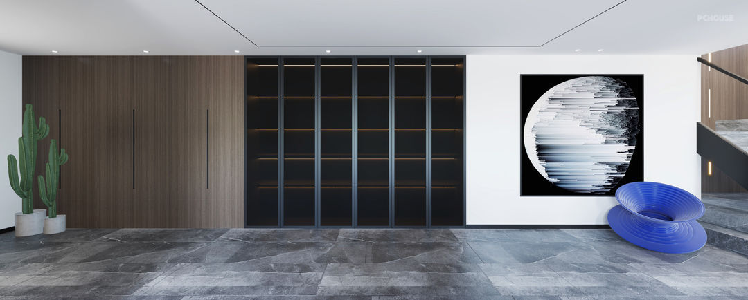 木饰面的结合带有宁静和安稳的自然力量,赋予空间一种安心稳重感。以灰色作为中间色搭配调和,使得空间多了份轻盈感。总的来说,这样简约而不简单的颜色配置,营造出的是一个舒适的无压空间。以一种脉络扩散延伸的形式展现,蕴含着对于每一次在空间邂逅时的怦然心动。