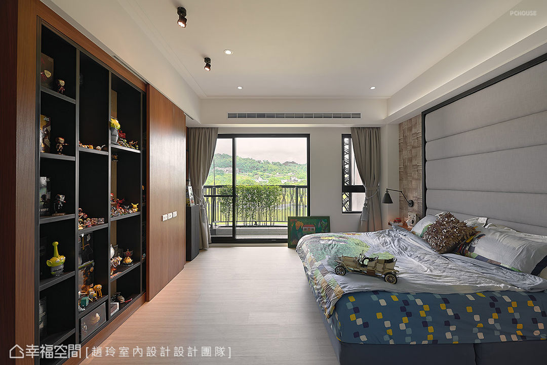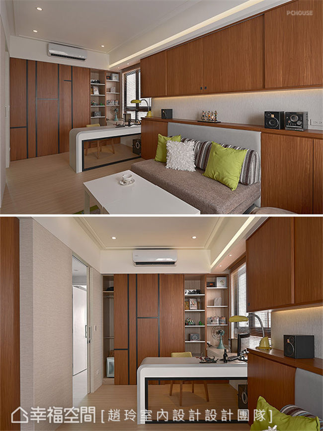 起居室兼具书房与交谊厅功能,并规划大量的收纳展示柜,满足丰富的生活需求。