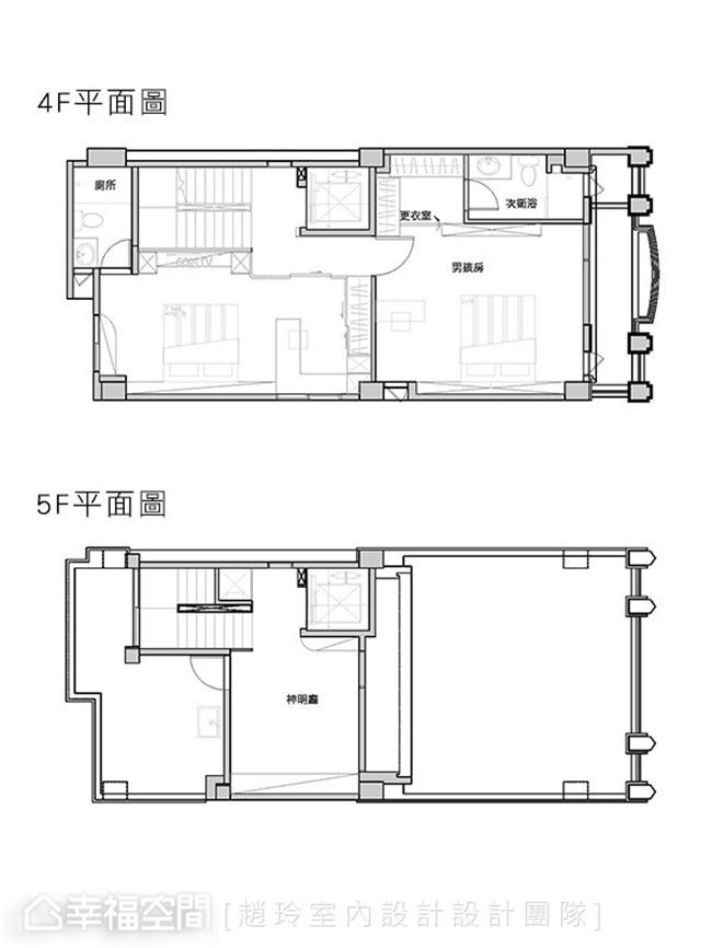 整体空间配色则以白色为主,搭配金色、灰色系的家具与软件来表现华丽细节,创造精致且不流于通俗的新古典之美。考量十年、二十年后的起居需求,实用机能性亦是本案的一大设计重点,除了强调充足的收纳量,三楼、四楼的空间规划更分别安排卧房与兼具书房、交谊厅功能的起居室,让屋主的一双儿女能够保有自己专属的私人空间。