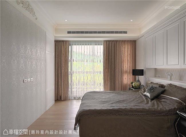 延续公领域的风格设计,以白色简约的线板造型做铺陈,结合古典图腾意象,营造优雅细腻的空间质感。