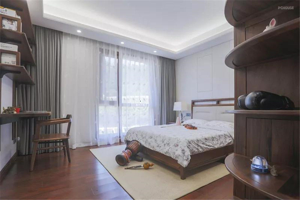 白色的墙面与简约古朴的家具,搭配出素简风华的情调;墙面悬挂的水墨挂画及隐约墨色的窗帘,点缀出温润与雅致的中式空间。