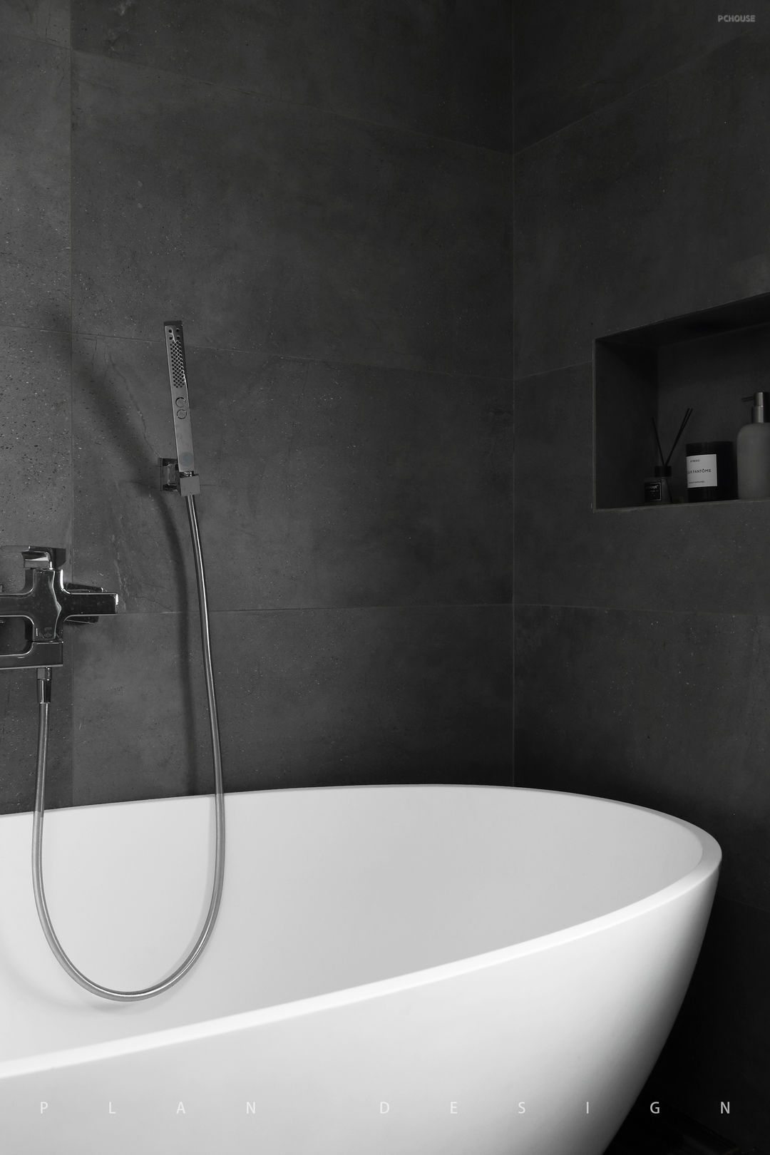主卧我们放置了独立式浴缸,搭配颗粒感明显的水泥砖,在现代风格的整体调性下透露着一丝轻松愉悦的氛围。