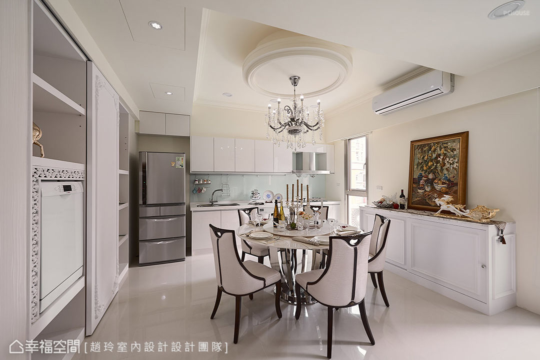 原有房型偏向倾斜且室内格局大多不是很方正,在空间配置与材质运用上产生不易发挥的情况,经赵玲室内设计操刀后,重塑整体空间感、拉出重心并使之平衡,且利用新古典风尚的优雅与浪漫营造空间氛围。
