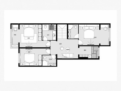 二楼的起居室属于三层与一层的一个转承区域,所以在背景墙的设计较为客厅更加沉稳与复杂,能够起到初见即能吸引眼球的的效果。两边的复杂金属屏风与中间简单的木制护墙板造型的结合,有繁有简有方有圆。哑口处铜与石材一直到顶的设计更能体现房高感觉。