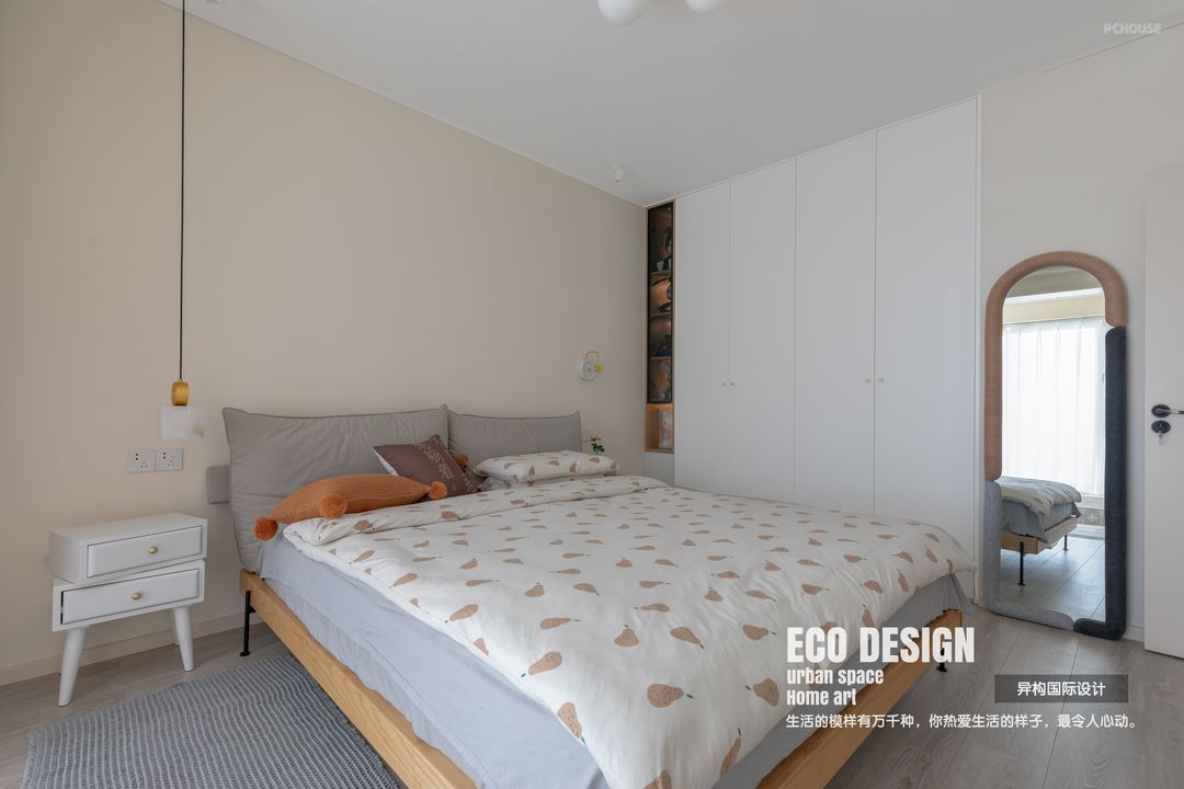 浅黄色的墙面,杏色的窗帘都是那么的精致,床头弱光源的点缀,更是营造出了舒心静雅的睡眠氛围~
