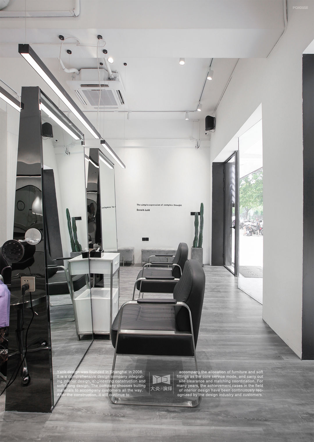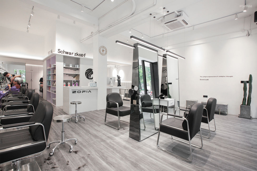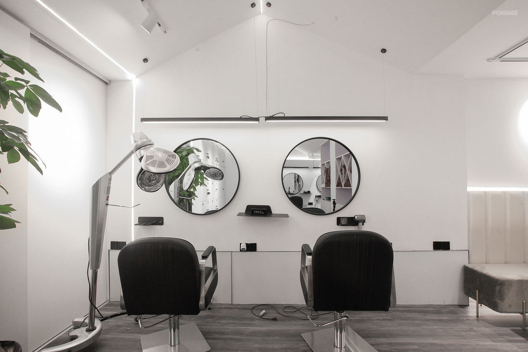 前言: 案是业主委托我们设计&施工的第二家美发店了,第三家还在筹备中~作为公共空间的设计,要在完全满足业主所要求功能的前提下,考虑为店员,客户不同人群提供不同的体验。让客户有最佳体验,并配置出最大的容客空间,来满足经营管理上便携,高效的美发操作流程;设计师就以风格粗犷、天然简约的现代工业风来呈现出一个独特而有张力的空间形象来强化其品牌理念。采用大面积留白就更加突出工业风的简洁,以经典的黑白色调为主显得更加通透有魅力!