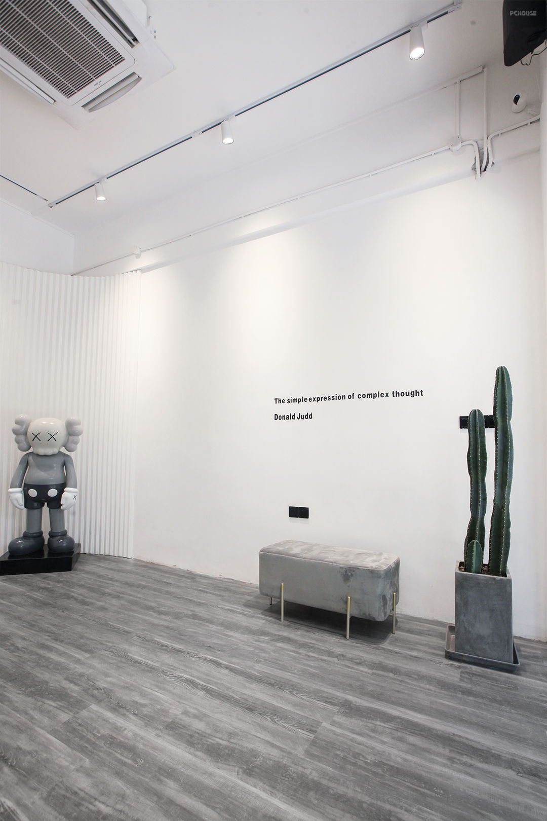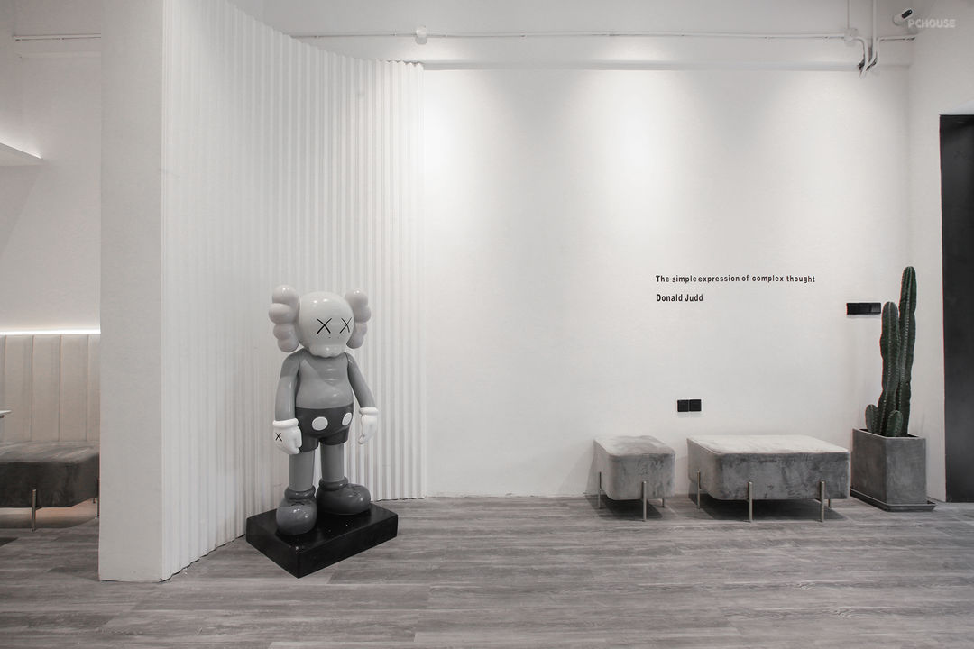 Kaws作为潮流玩家心目中的“圣物”,已成为都市时尚人士的审美风向标。#地板 #绿植 #沙发凳 #中央空调 #轨道灯 #白色装饰墙 #工业风