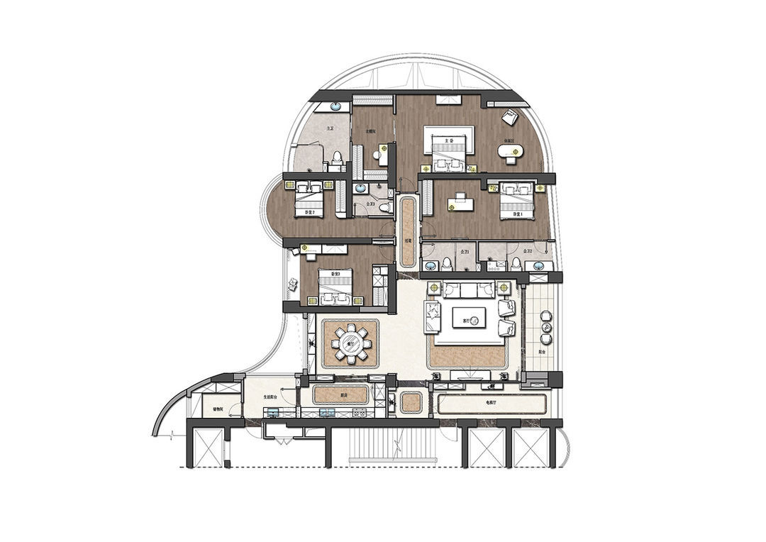 整个客厅空间低调而沉稳,没有让人觉得奢华的装饰,却处处透露出居住者不俗的品味和绅士风格,更舒适、更耐看、更长久。
