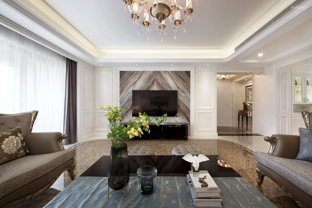 白底是家的容颜,蓝调是时光的清浅,客厅散发着一份不张扬的精致感。脱下外套,斜躺沙发,在这充满西式情调的简雅氛围里,享时光美好,无人打扰...
