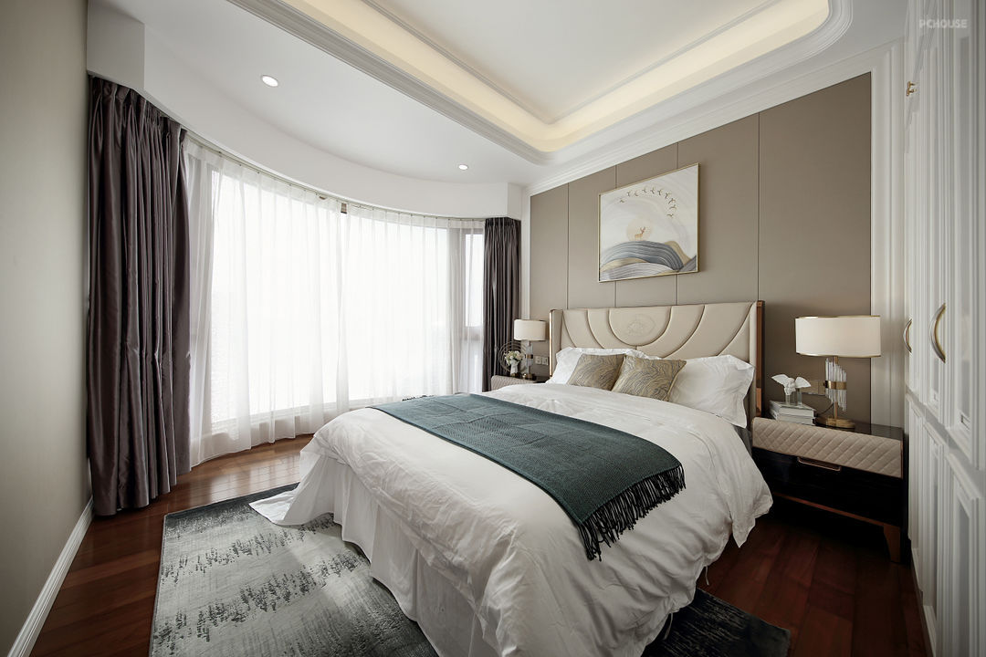 步入卧室,安静清爽之感迎面扑来,柔和的色彩与灯光催生了安眠慵懒的气息,让人不自觉地放下烦扰和重压,闭目浅呼,酣然入梦。