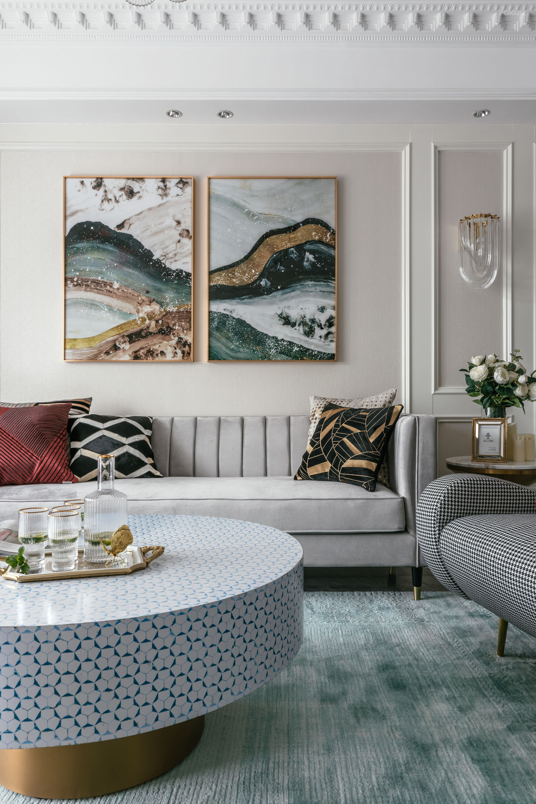 恰到好处的那一抹红 亮点了整个空间. 热烈而动感 丝绒 水晶 金属的质感 可以看到整个氛围都代表了屋主的生活态度 优雅 精致 追求生活细节品质.
