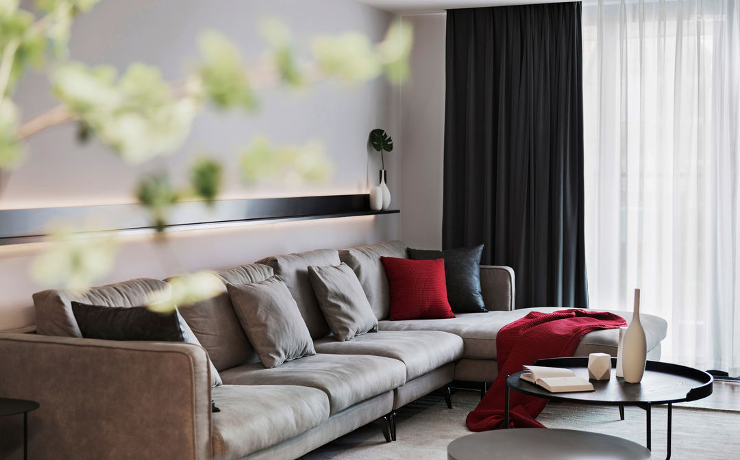 一抹红色作为空间的帷幕,为感官打开一丝惊艳。