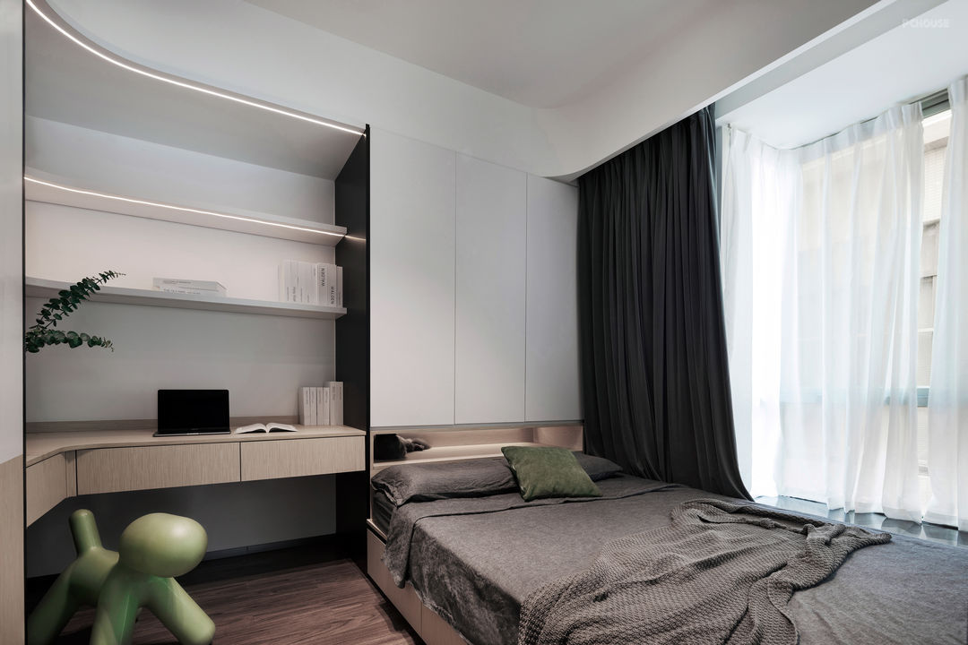 灰白色调打造出来的空间纯净简约,注入清晰有力的线条,视觉和谐统一。