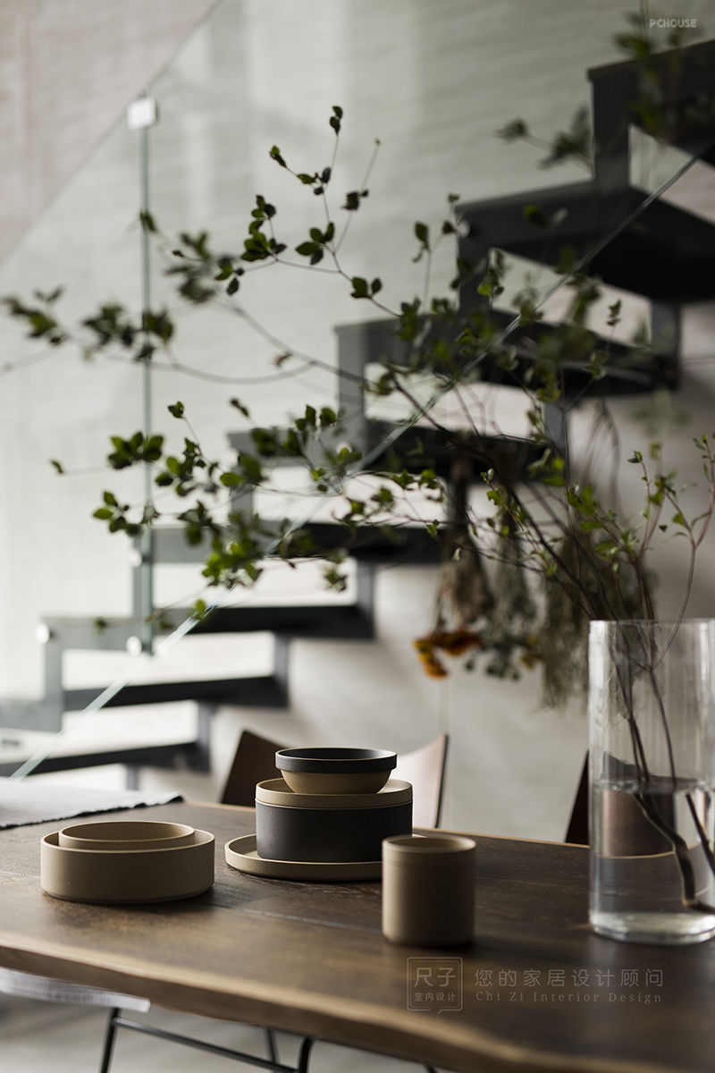 一壶茶、几枝花、一些散乱的器具,这些最真实的生活场景,将我们从工业风的酷感中脱离出来,反而更显人情味。