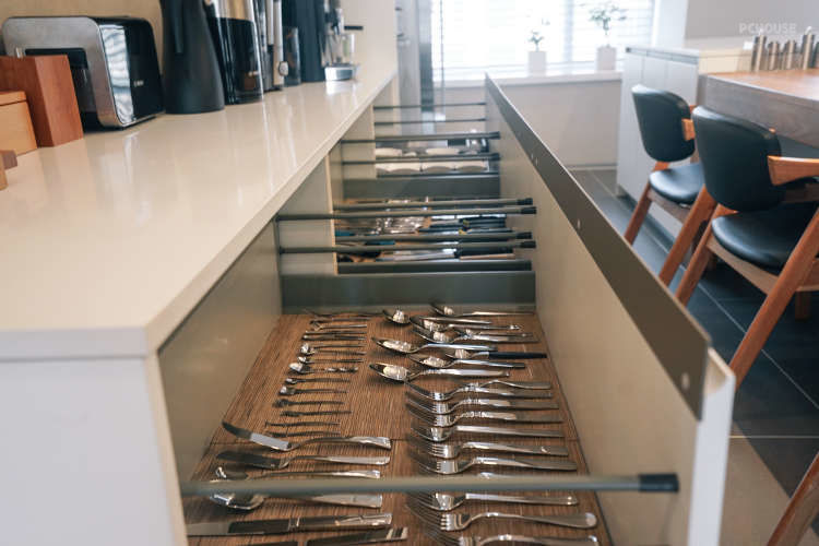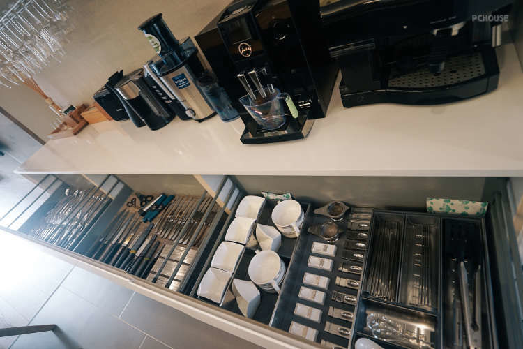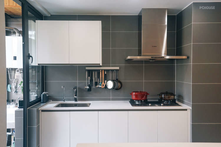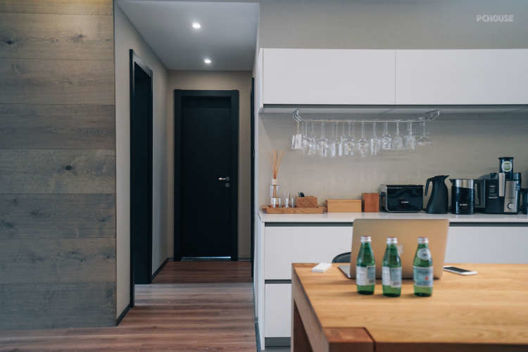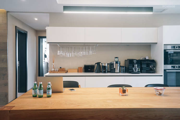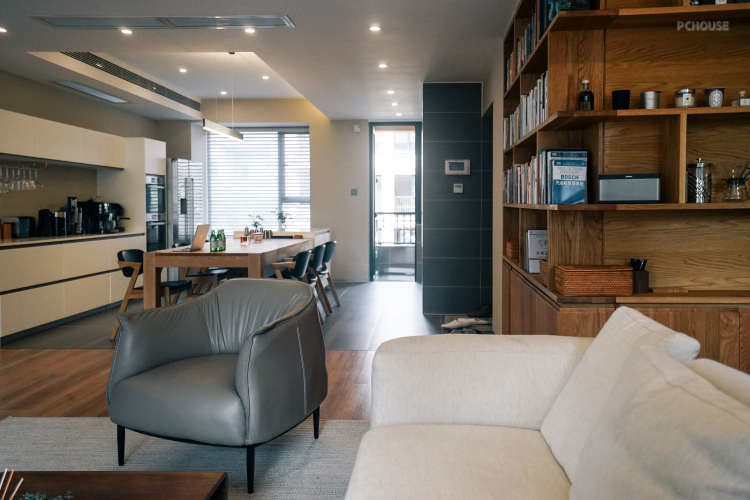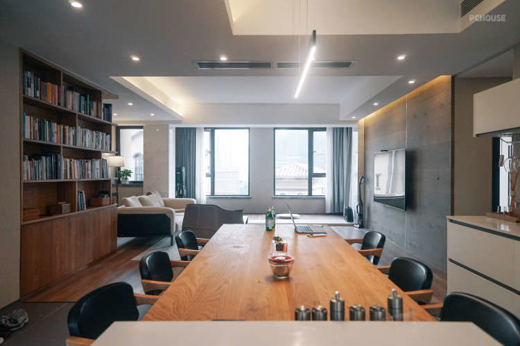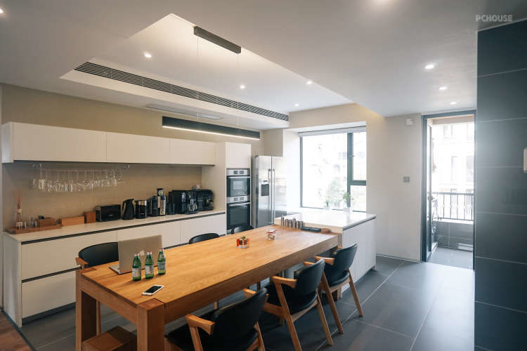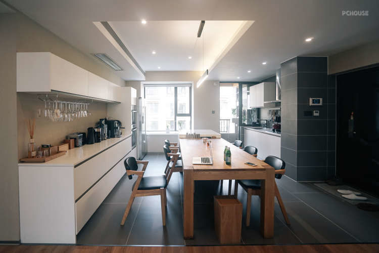 由于业主也是外企高管,常居国外,所以餐饮习惯比较偏欧美,所以选择了开放式厨房,业主很喜欢这个空间,办公和朋友聚餐都在这里完成。