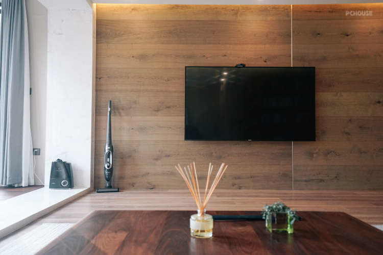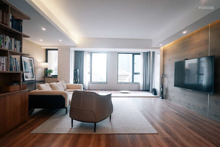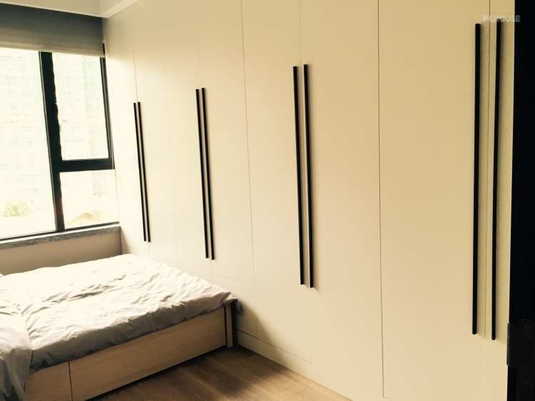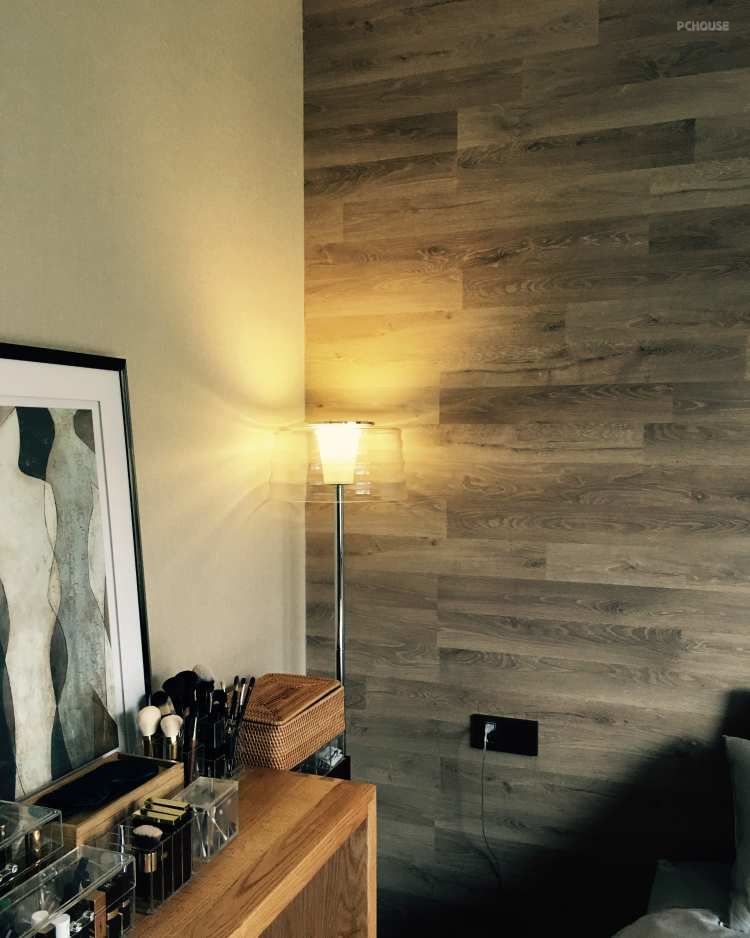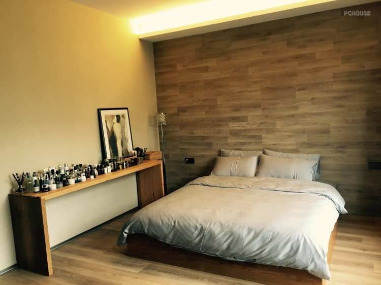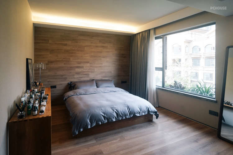 主卧室同样,背景墙由于太麻烦,被业主自行简化了,全是木地板上墙