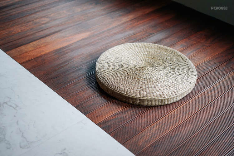 这个地台想特殊说明一下,由于阳台只有1.8米进深,所以是无法摆上围坐的茶桌的,所以增加呢这样一条600宽的白色石材,拓宽了整个阳台区的宽度