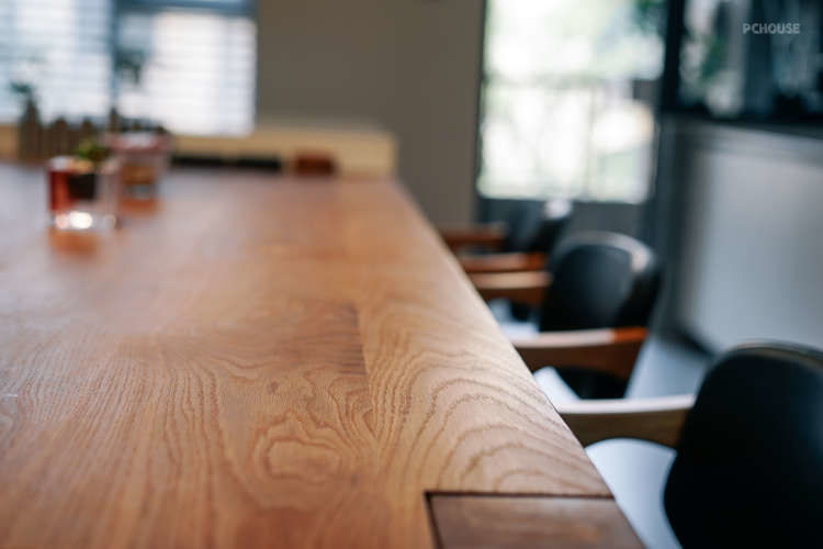 这张餐桌也是我们找木质加工厂定做的,由于吸取书柜的教训,这张桌子在选料的时候就非常注重纹理的表现力,如图