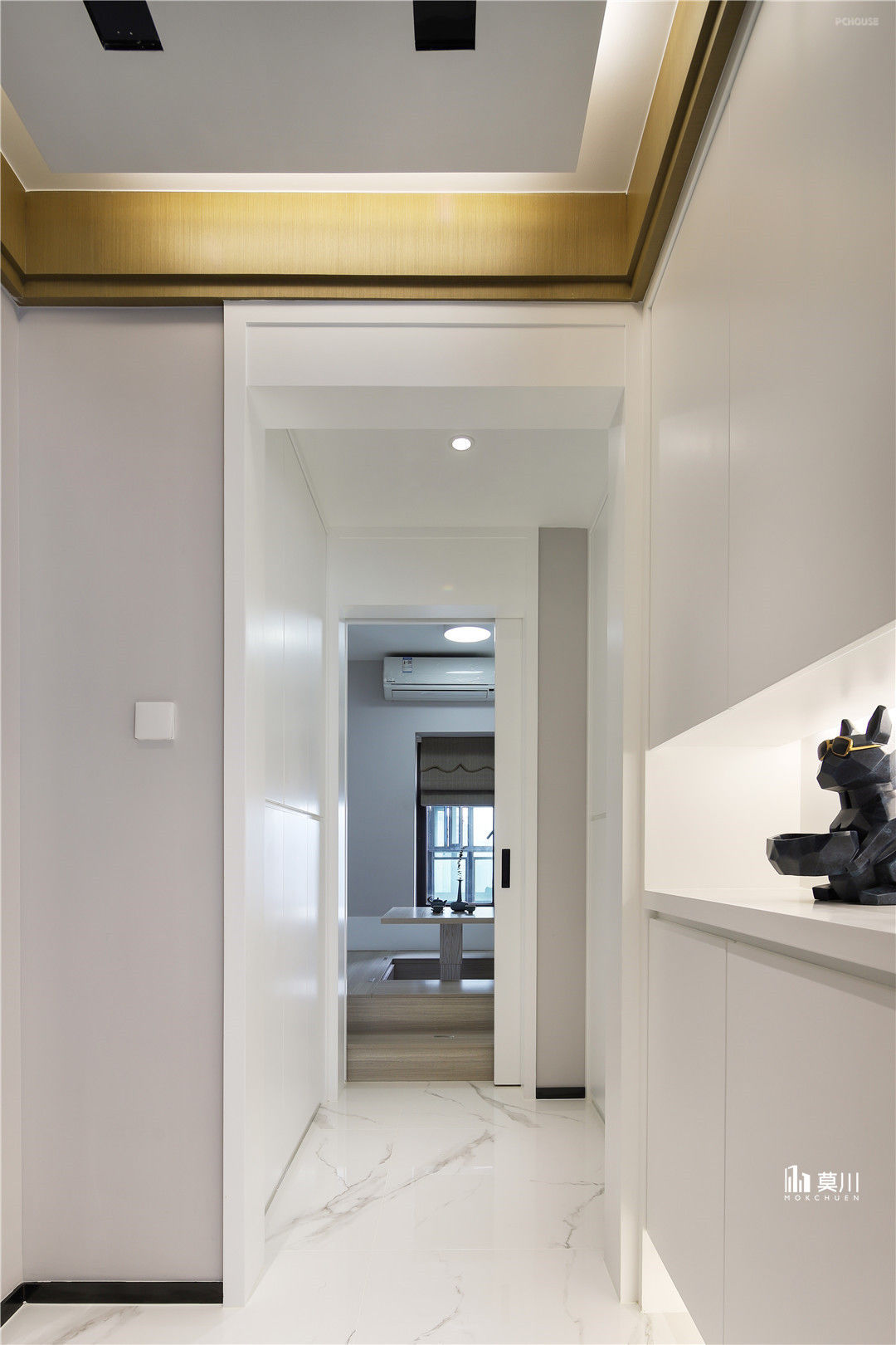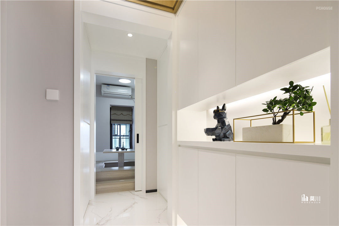 玄关的作用是一个“减负”的过程,储物柜用来卸下外物,温馨和谐的色彩基调平和人的内心,让业主内心平和,享受生活。