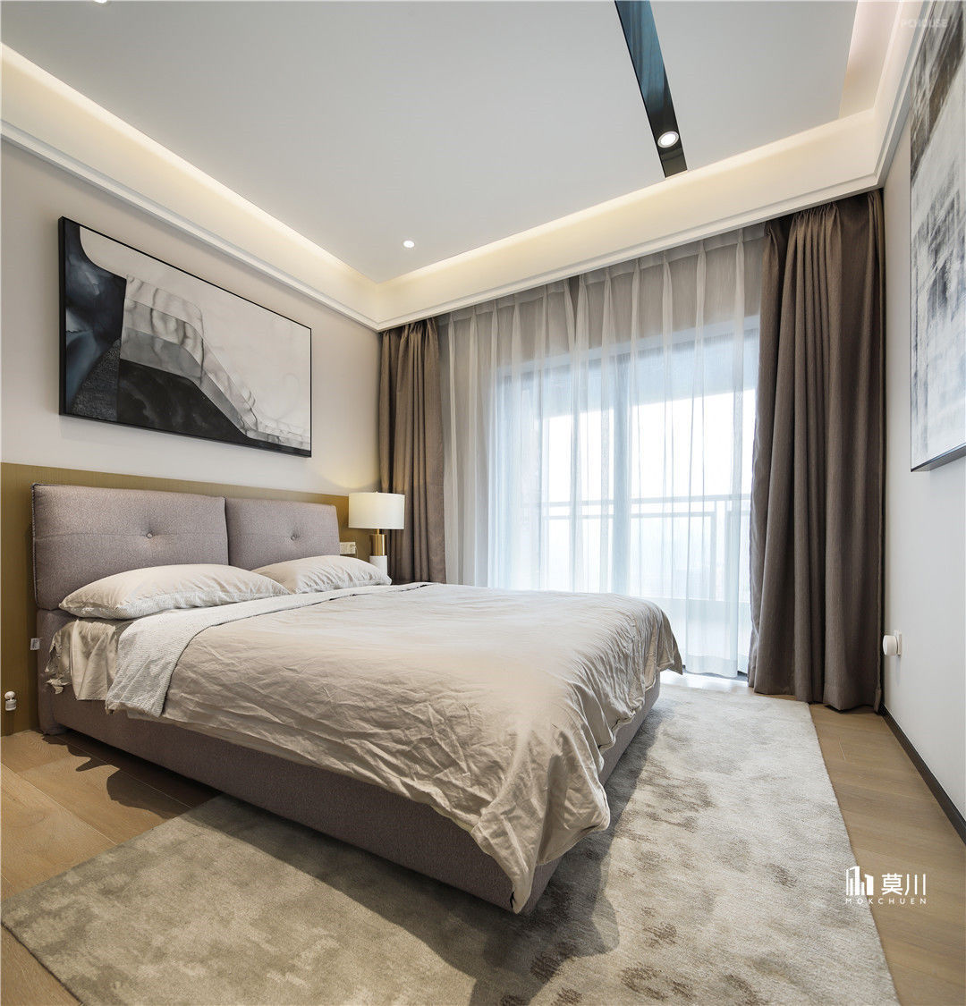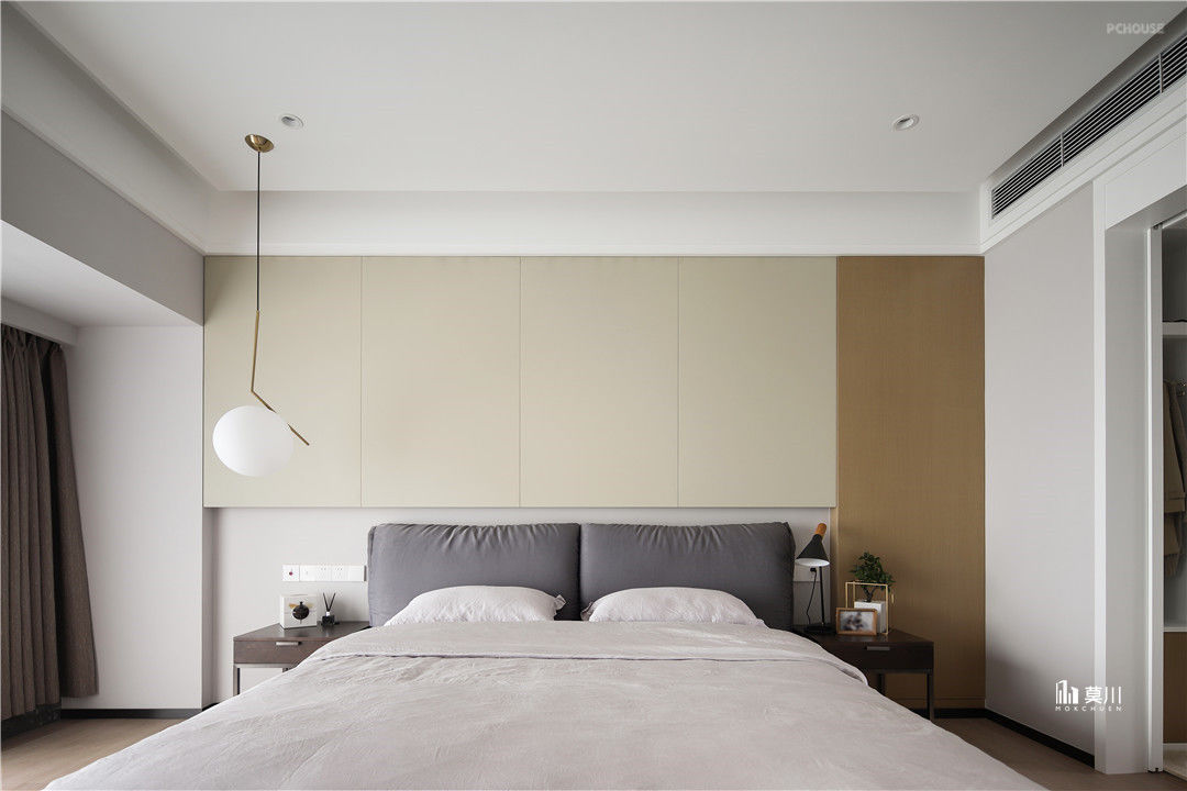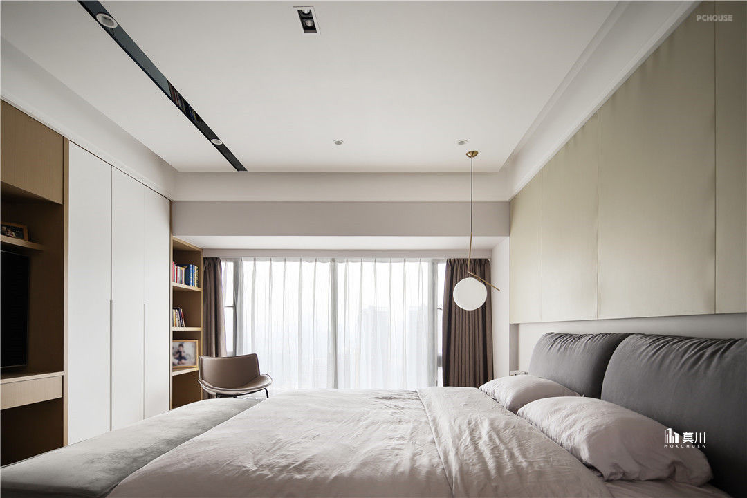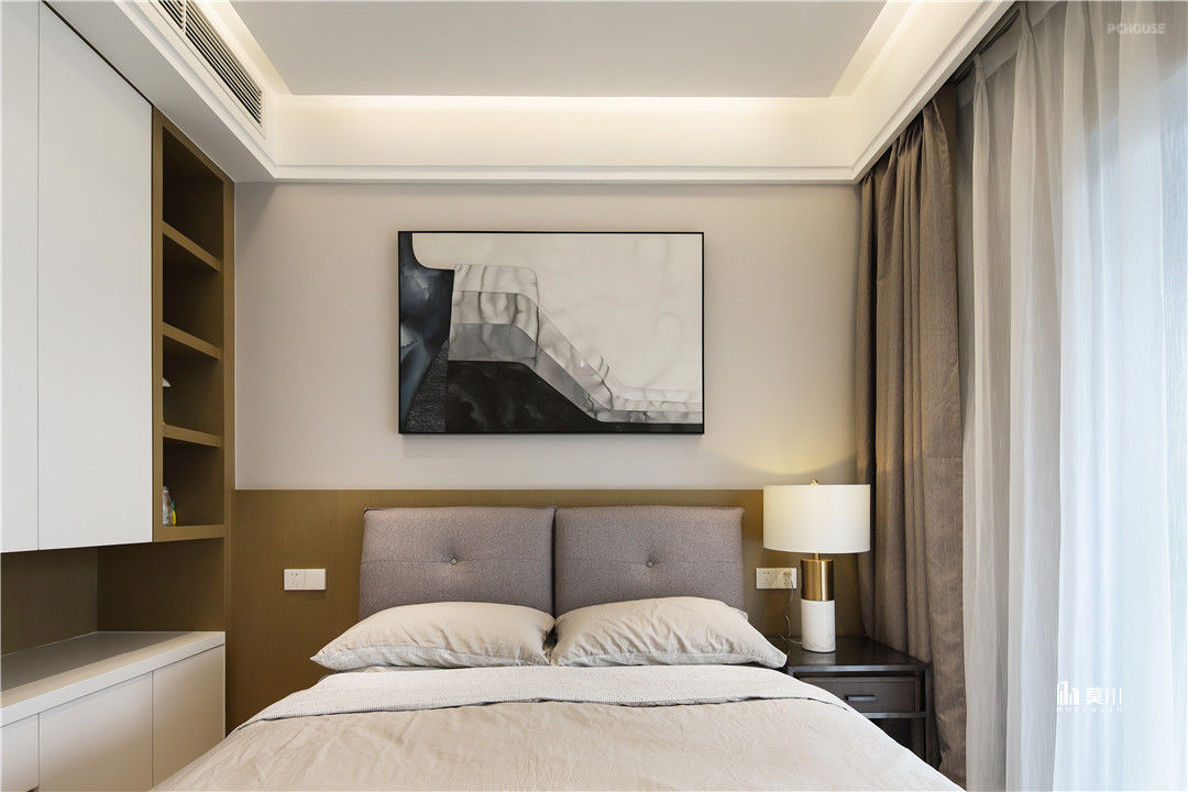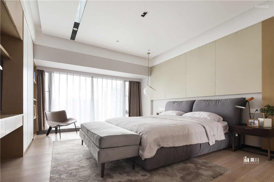 性适合居家使用;天花设计采用反灯槽表达不一样的层次感,再有两圈细致的天花凹槽体现精致感。 #卧室 #床 #床头柜