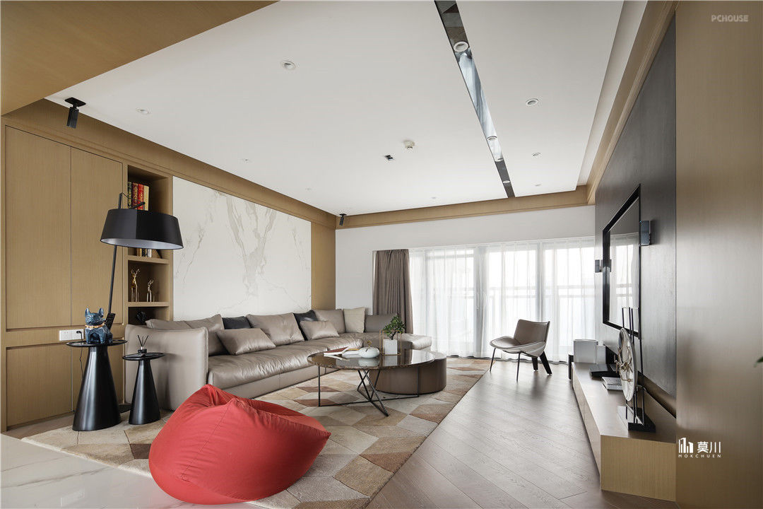 雪花白大理石、木饰面同属天然材质,又有着截然不同的自然属性,一刚一柔,一冷一暖,在设计师的巧妙搭配下,碰撞出质感与温馨。#客厅 #电视背景墙 #置物架 #收纳