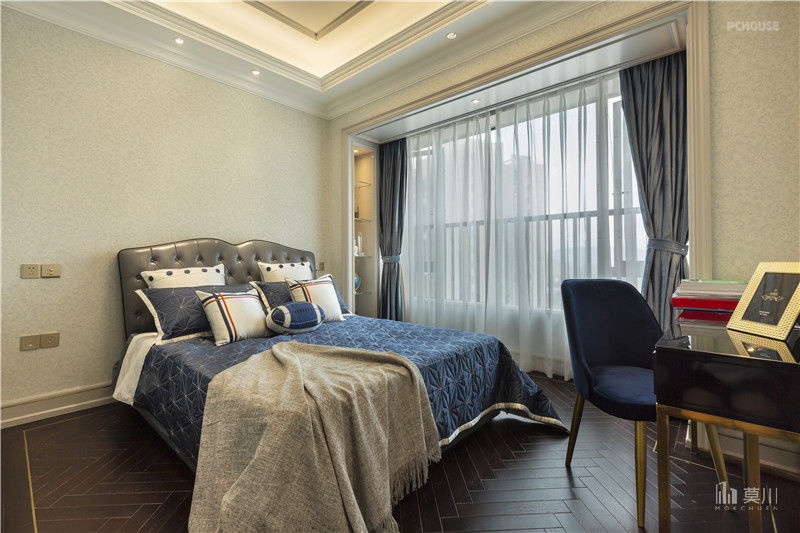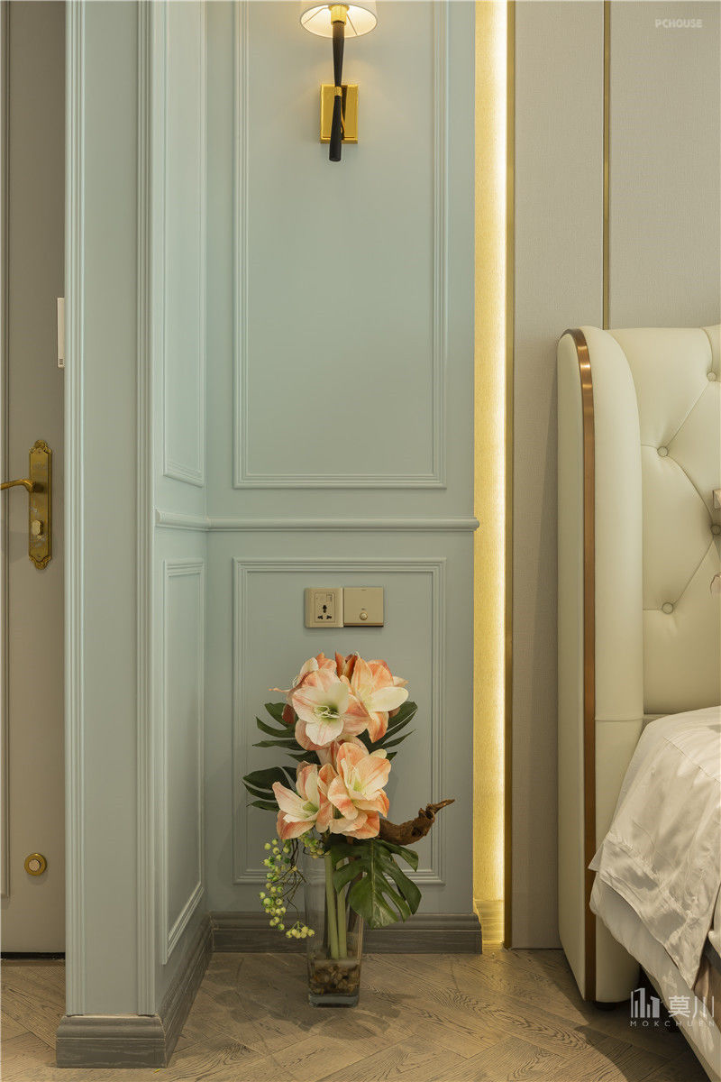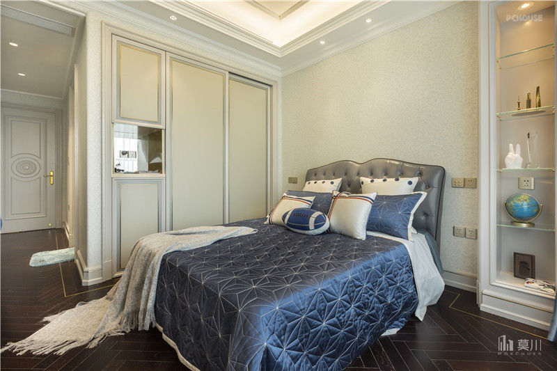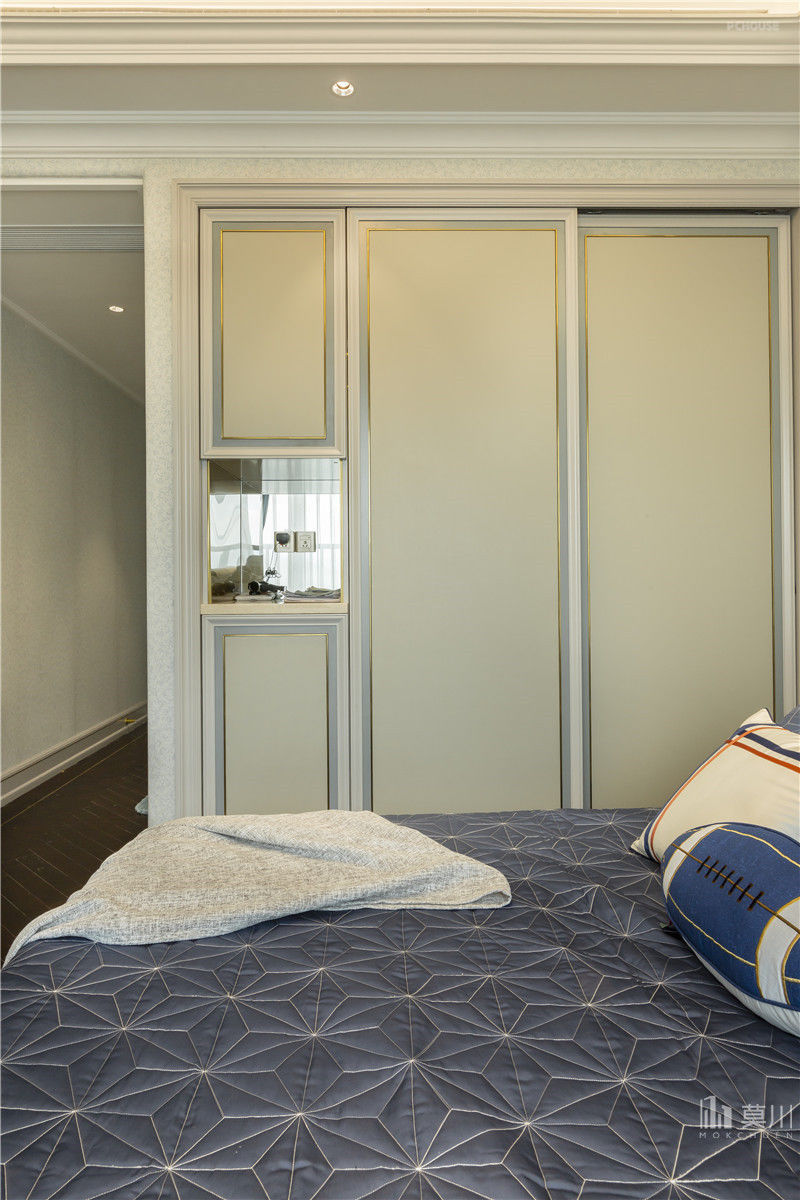 主卧超大联排衣柜及置顶设计,实用性强又美观,通过床头背景对调设计,及解决了床对着卫生间问题又使空间更大,床头两侧屏风式对称设计理念,第一增加了主卧的私密性,一侧为暗藏式柜体,使整个空间更加完善整体,床头两侧灯槽设计使主卧更加温馨,又可以作为起夜灯来使用。#卧室 #床