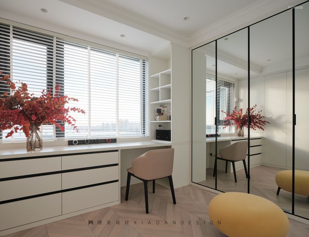 品味生活就像品酒一样,总是各种滋味,我们想把这种丰富度印刻在每个空间里,所以在设计方案中,会感受到不同空间带给你的不同感受。客厅一片不规则的雾霾蓝在洁白的空间里成了点睛之笔,在这里可以品出一丝绅士的稳重与安静,就如业主本人一样。