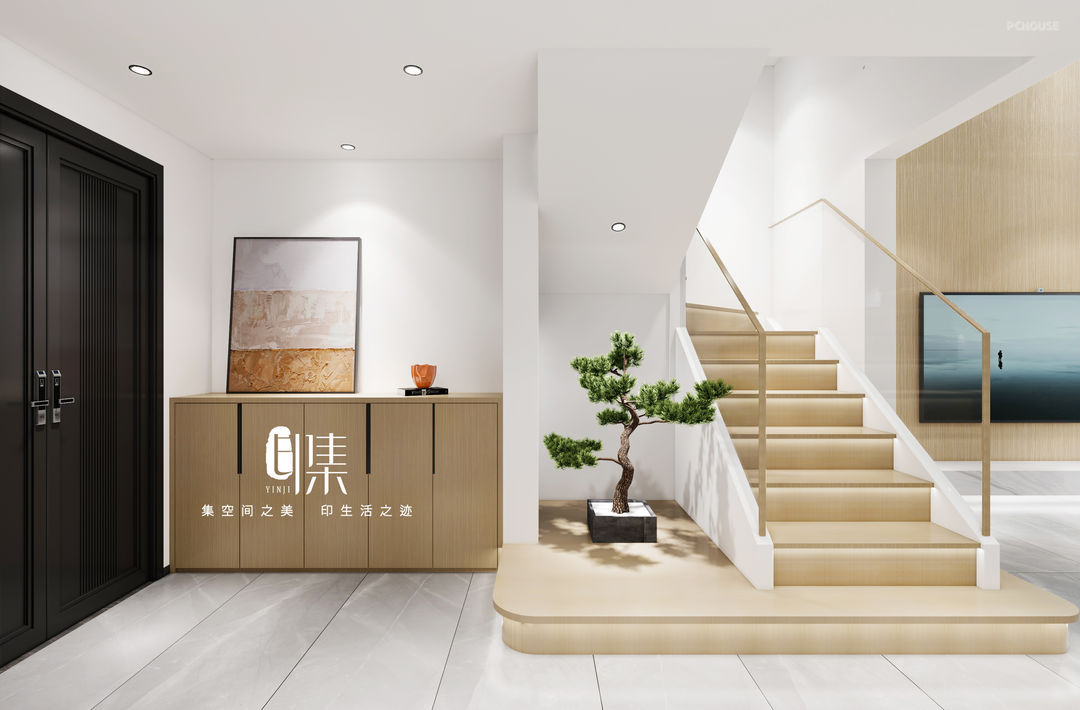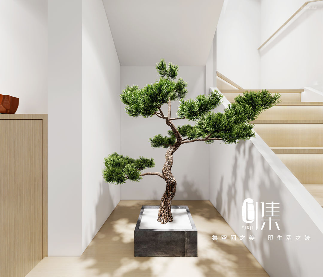 家,必然要有着和主人相似的气场。打开门的一瞬间,扑面而来的必然是自然,舒适的空间:抬手便可置物的入户玄关,举目而望的迎客松形成独特的造景,转化楼梯与入户与客厅三者之间的关系。