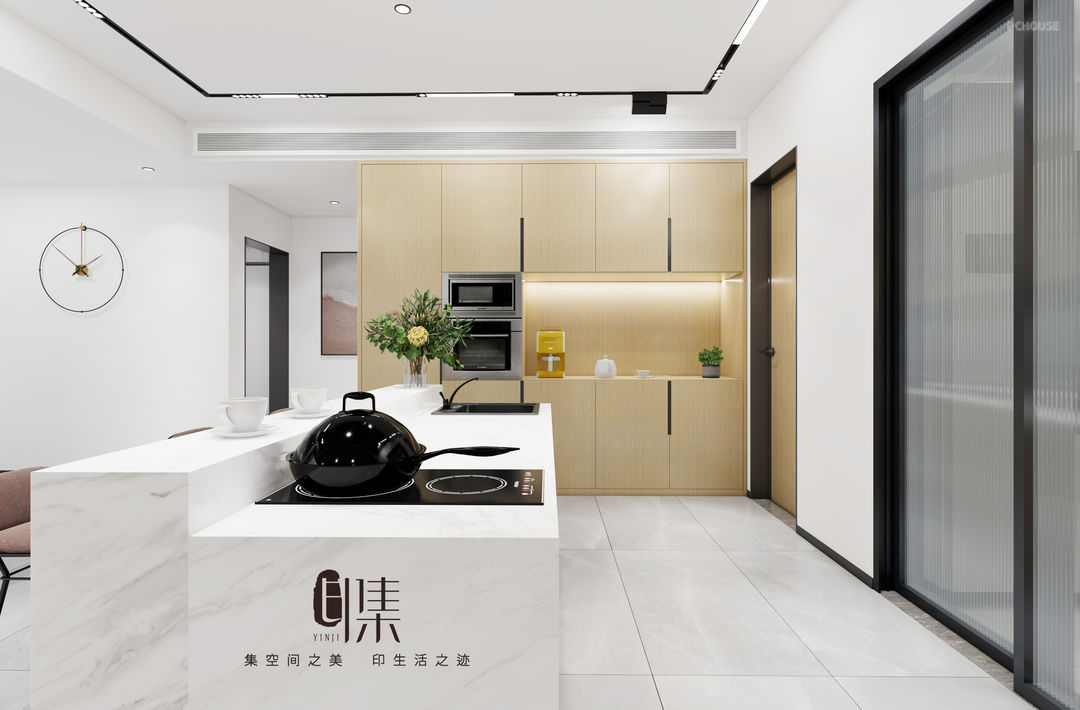也成为了中转厨房、客厅、餐厅三个功能区的轴心空间。