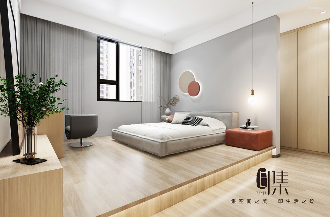 贴近地面的床铺,更有安全感。抬高的地面,线性灯光氛围的区隔,让空间层次明显,也让居住的环境更加开阔。
