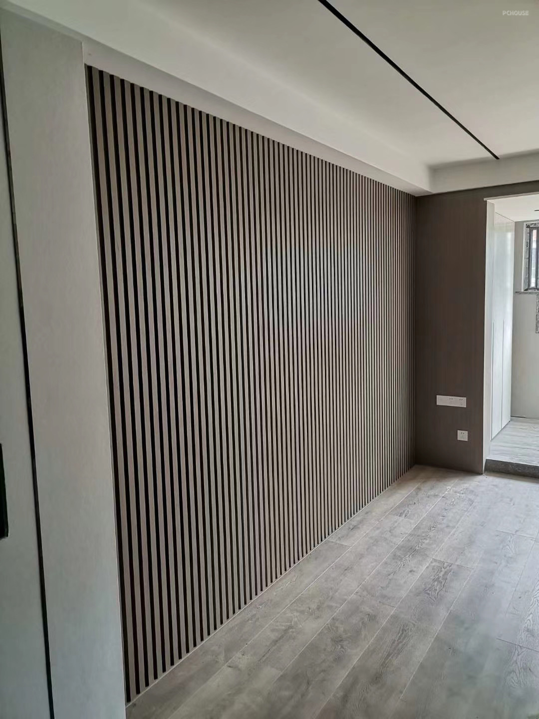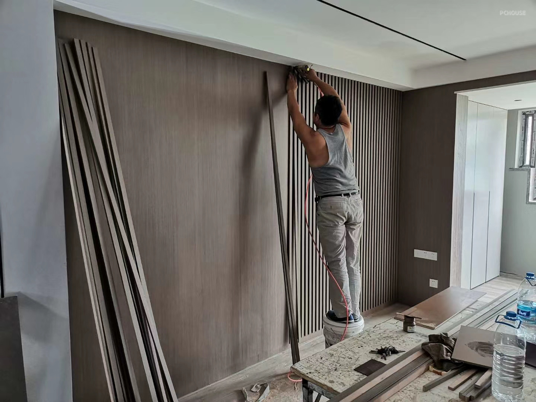 木格栅由师傅手工安装,沙发、电视背景墙加起来近100多根。