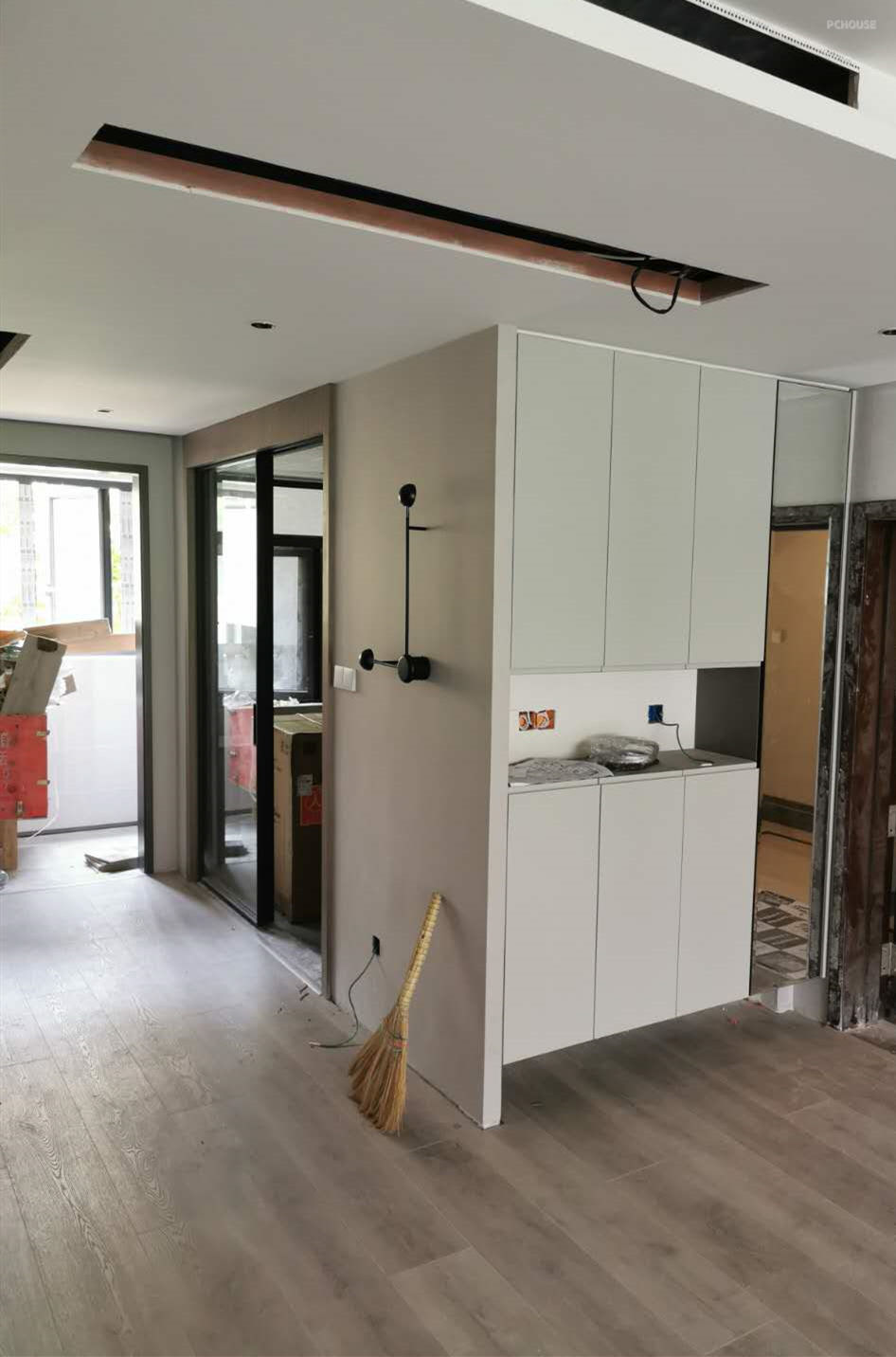 玄关由收纳柜+穿衣镜组成,颜值高也实用,提高出门的效率。