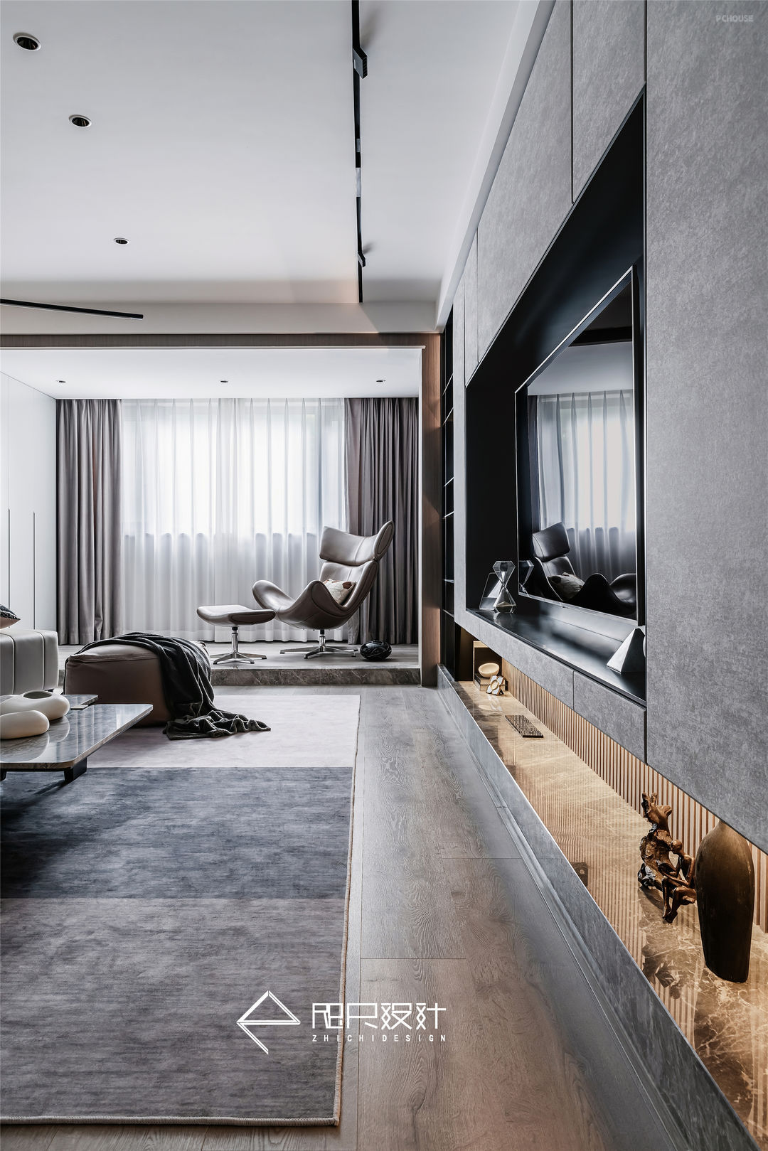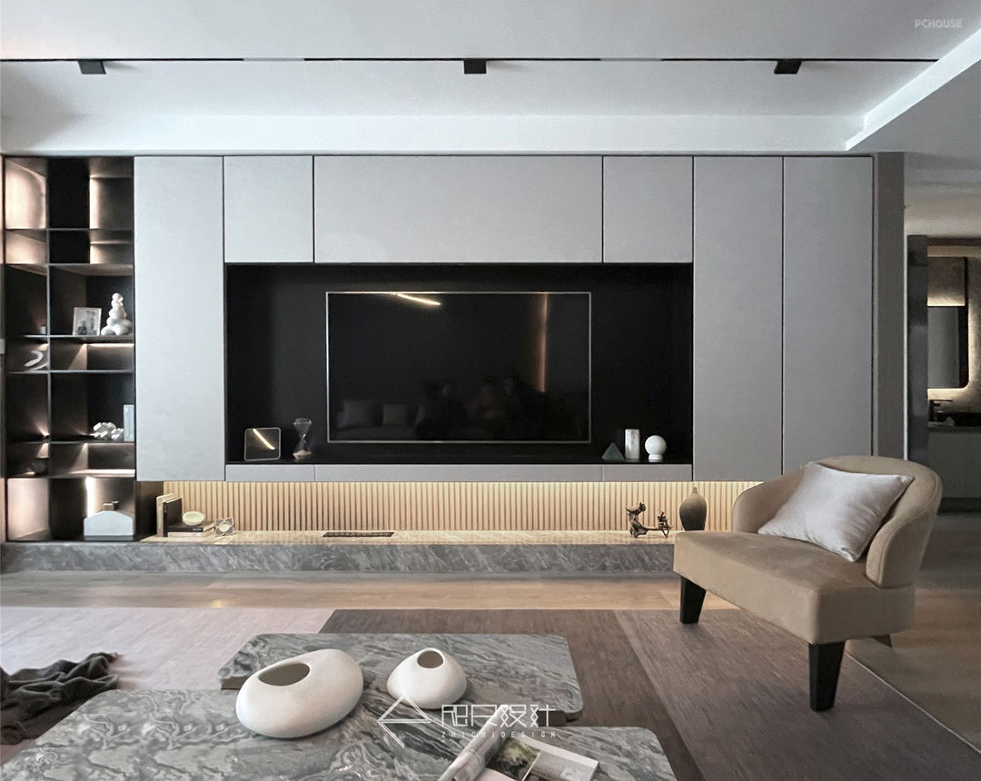 在灯光的烘托下,强化材质的细节质感,让墙面更具层次感、灯光效果更加柔和;