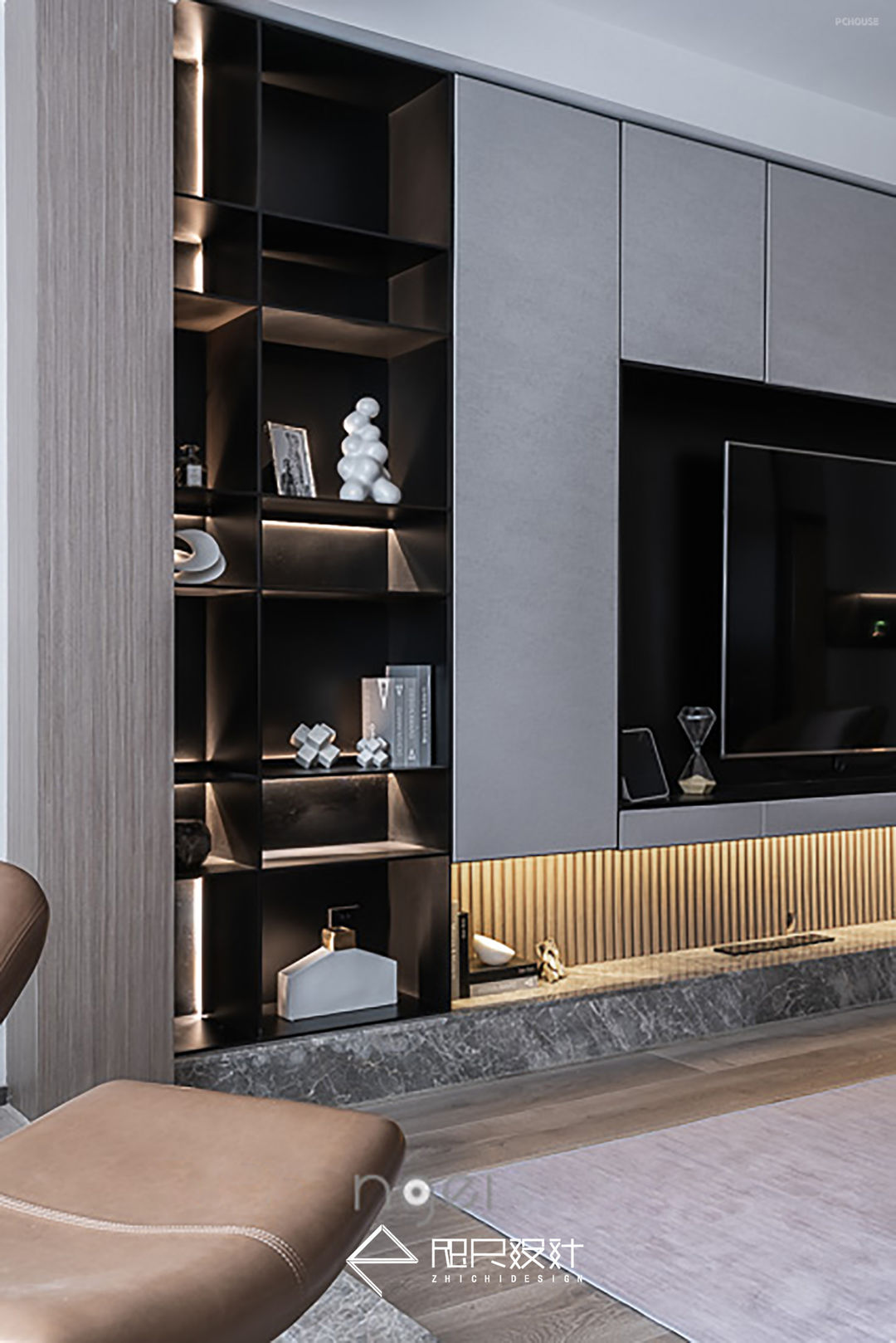 柜体内安装隐藏式的灯带设计,不破坏空间的整体美感,保证视觉上的统一性。
