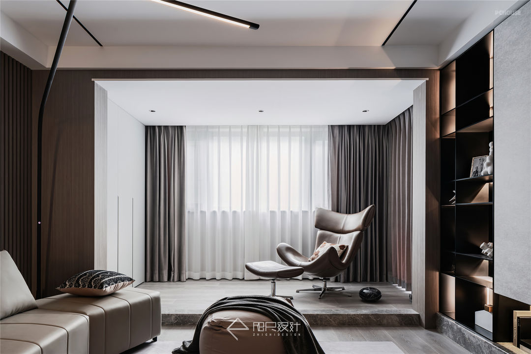 将北阳台抬高十公分打造地台,扩宽视野、形成独立的休闲区,全自动化窗帘简洁利落、遮光性强,为主人家打造出理想的休闲生活!