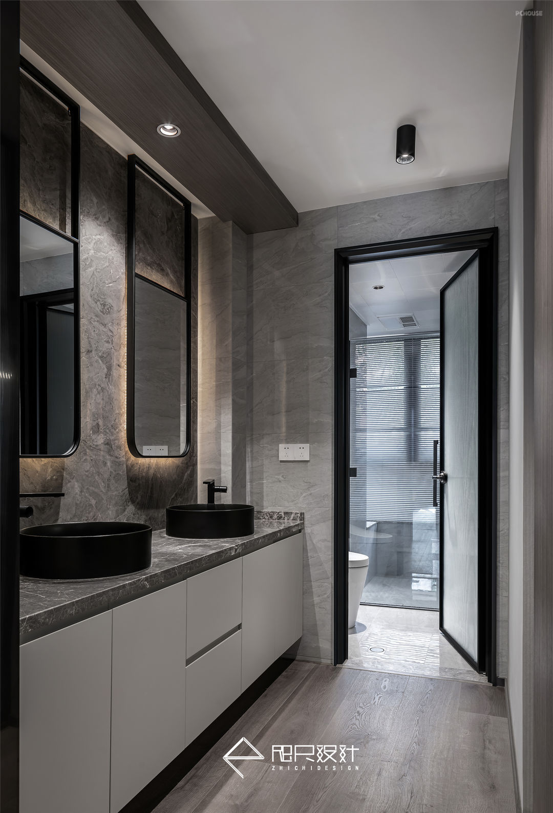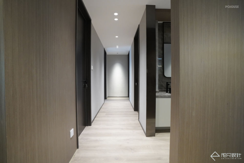 卧室采用的都是黑色窄边框到顶门套,更显层高优势感,看起来也非常整洁精致。