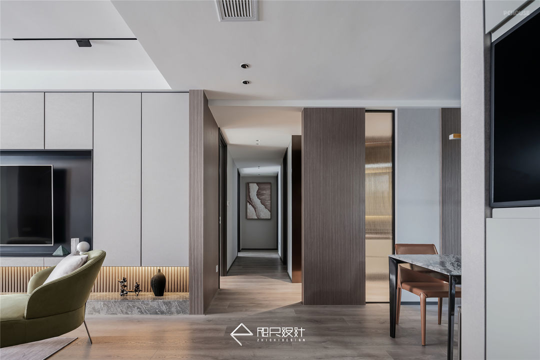 打造进门玄关处,用长虹玻璃做隔断,保证玄关隐私性同时隔开两个空间。