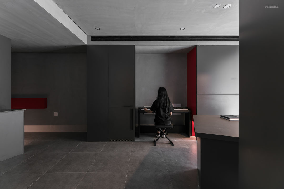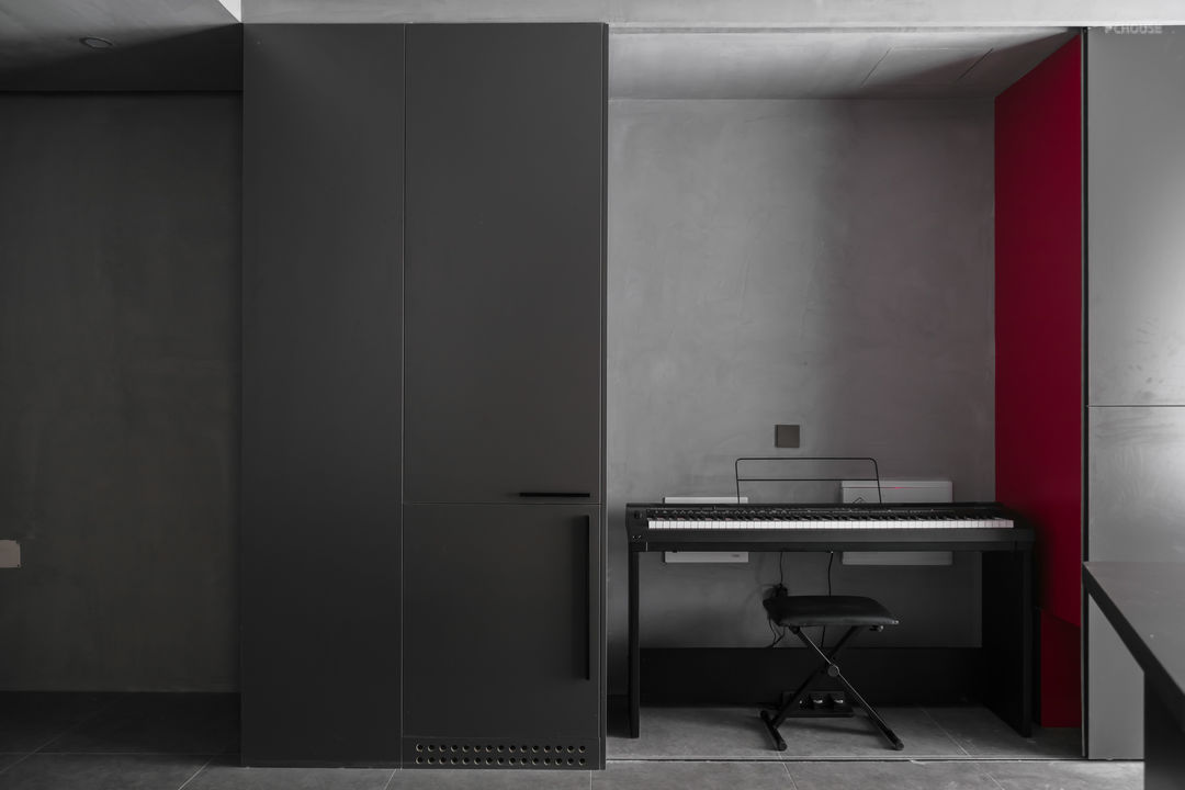 书房即客厅.我们做了一组柜体.柜体内部藏了电子钢琴和暗藏式冰箱.
